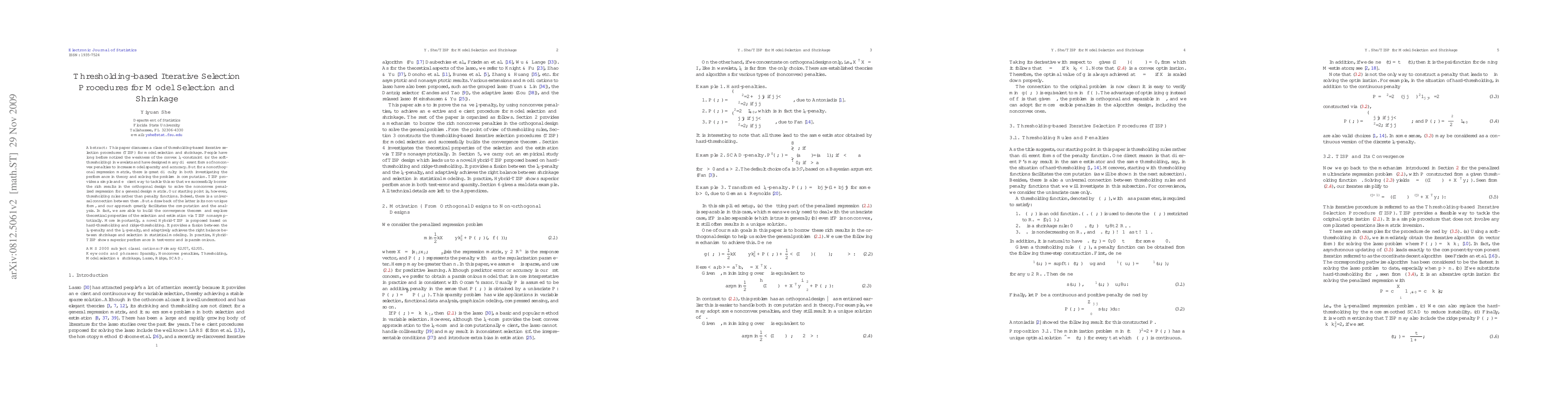 This paper discusses a class of thresholding-based iterative selection procedures (TISP) for model selection and shrinkage. People have long before noticed the weakness of the convex $l_1$-constraint (or the soft-thresholding) in wavelets and have designed many different forms of nonconvex penalties to increase model sparsity and accuracy. But for a nonorthogonal regression matrix, there is great difficulty in both investigating the performance in theory and solving the problem in computation. TISP provides a simple and efficient way to tackle this so that we successfully borrow the rich results in the orthogonal design to solve the nonconvex penalized regression for a general design matrix. Our starting point is, however, thresholding rules rather than penalty functions. Indeed, there is a universal connection between them. But a drawback of the latter is its non-unique form, and our approach greatly facilitates the computation and the analysis. In fact, we are able to build the convergence theorem and explore theoretical properties of the selection and estimation via TISP nonasymptotically. More importantly, a novel Hybrid-TISP is proposed based on hard-thresholding and ridge-thresholding. It provides a fusion between the $l_0$-penalty and the $l_2$-penalty, and adaptively achieves the right balance between shrinkage and selection in statistical modeling. In practice, Hybrid-TISP shows superior performance in test-error and is parsimonious.