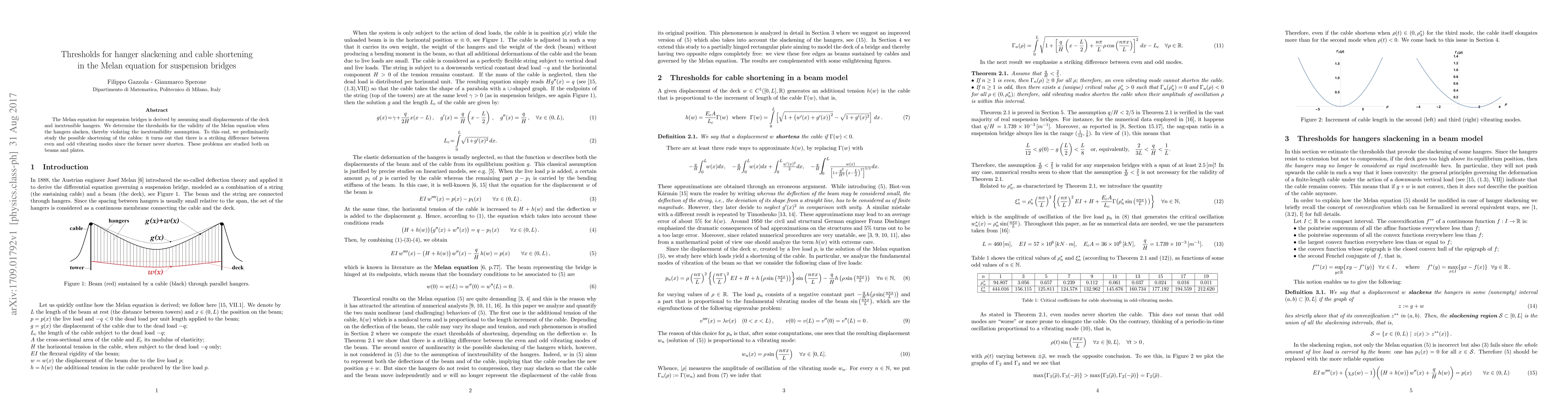 The Melan equation for suspension bridges is derived by assuming small displacements of the deck and inextensible hangers. We determine the thresholds for the validity of the Melan equation when the hangers slacken, thereby violating the inextensibility assumption. To this end, we preliminarily study the possible shortening of the cables: it turns out that there is a striking difference between even and odd vibrating modes since the former never shorten the cables. These problems are studied both on beams and plates.