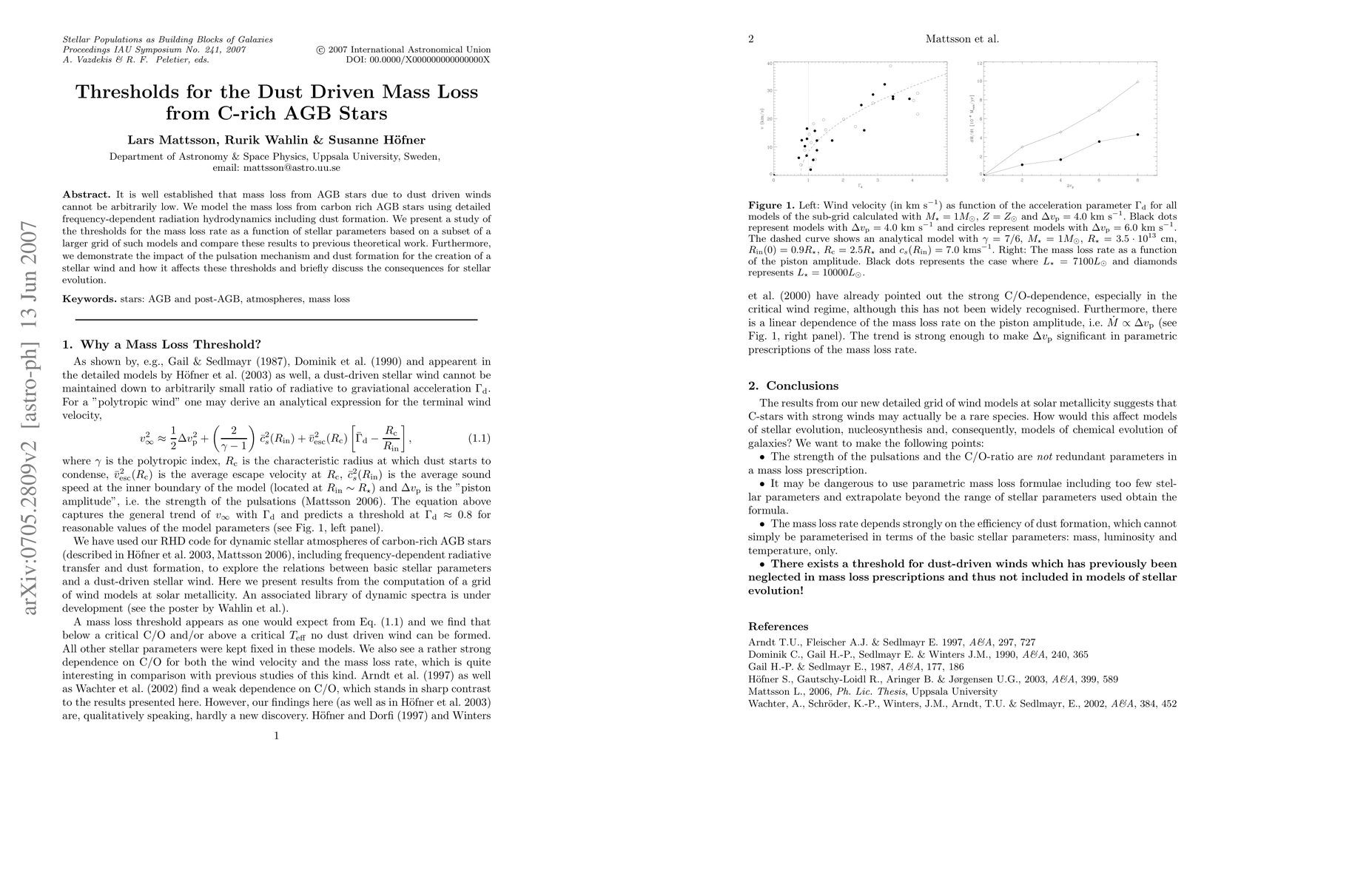 This paper models mass loss from carbon-rich AGB stars driven by dust-driven winds, identifying thresholds for mass loss rates based on stellar parameters. It compares these thresholds with observational and theoretical data, highlighting the role of pulsation mechanisms and dust formation in shaping stellar winds and their implications for stellar evolution.