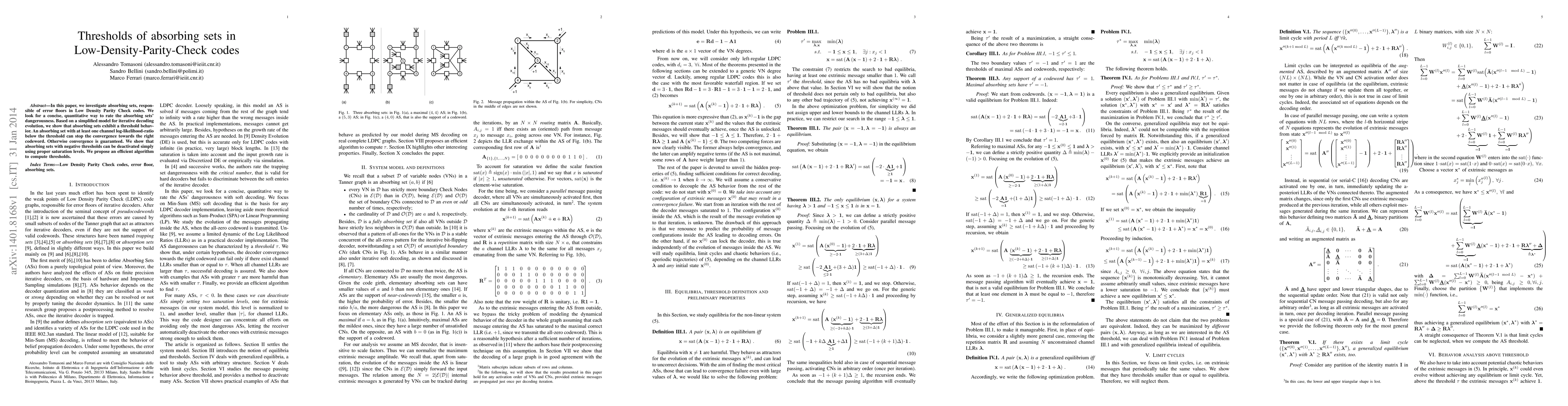 The paper presents a simplified model for iterative decoding evolution within absorbing sets, a method to identify a threshold parameter for each absorbing set topology, and an efficient search algorithm for evaluating this threshold.