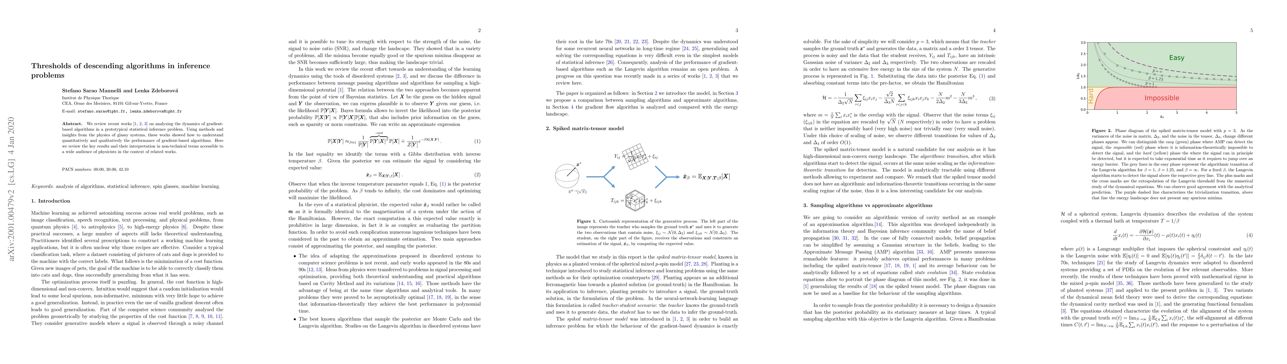 This paper reviews recent studies on gradient-based algorithms in statistical inference, drawing parallels with physics of glassy systems to explain their performance. It aims to present key findings in an accessible manner for physicists, highlighting the quantitative and qualitative insights gained.