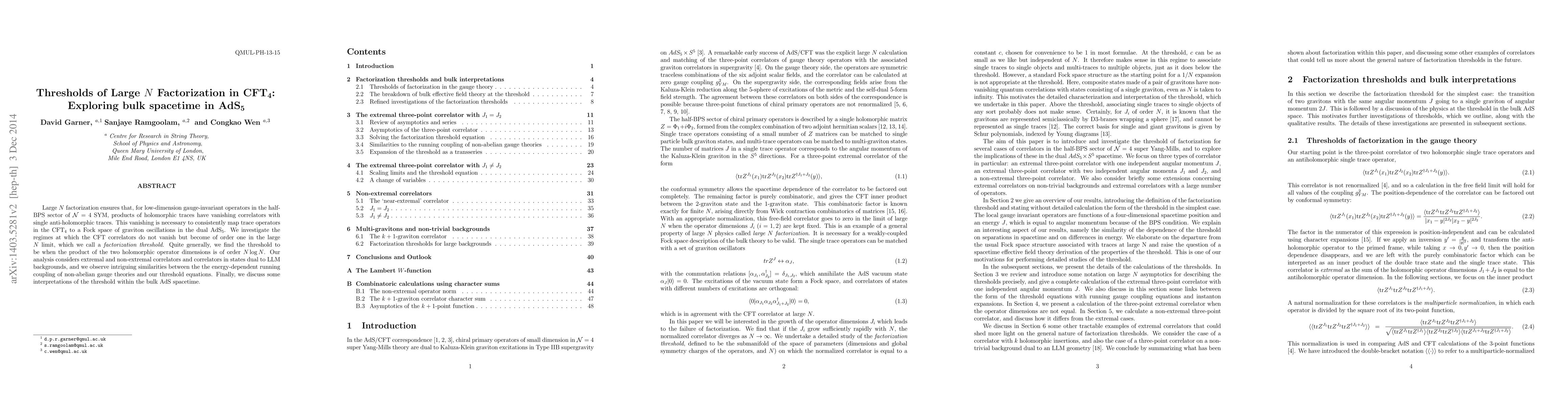 Large $N$ factorization ensures that, for low-dimension gauge-invariant operators in the half-BPS sector of ${\cal N}=4$ SYM, products of holomorphic traces have vanishing correlators with single anti-holomorphic traces. This vanishing is necessary to consistently map trace operators in the CFT$_4$ to a Fock space of graviton oscillations in the dual AdS$_5$. We investigate the regimes at which the CFT correlators do not vanish but become of order one in the large $N$ limit, which we call a factorization threshold. Quite generally, we find the threshold to be when the product of the two holomorphic operator dimensions is of order $N\log N$. Our analysis considers extremal and non-extremal correlators and correlators in states dual to LLM backgrounds, and we observe intriguing similarities between the the energy-dependent running coupling of non-abelian gauge theories and our threshold equations. Finally, we discuss some interpretations of the threshold within the bulk AdS spacetime.