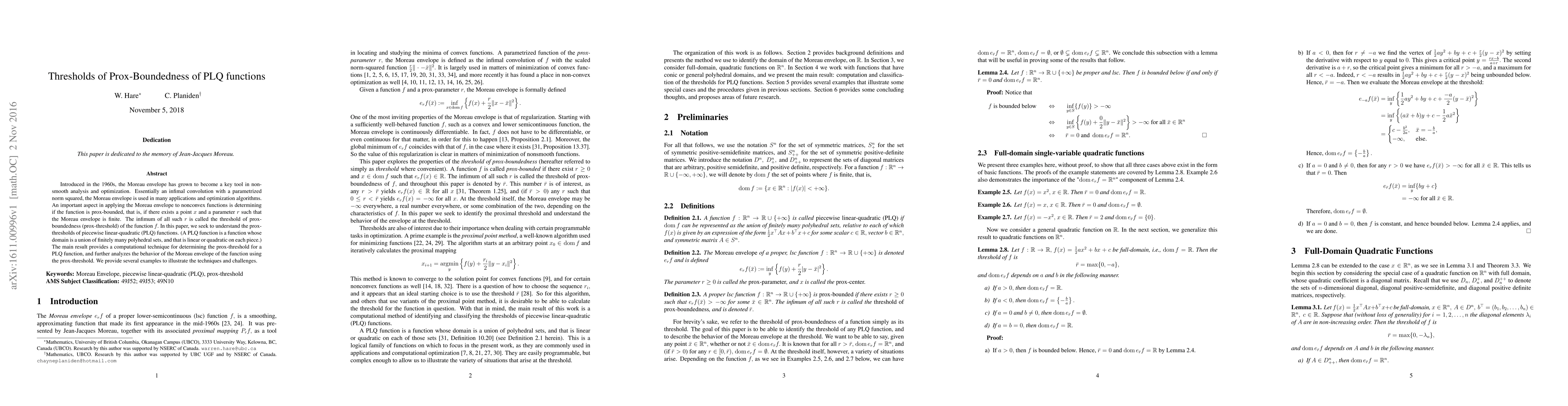 This paper investigates the prox-thresholds of piecewise linear-quadratic (PLQ) functions, providing a computational method to determine these thresholds. It analyzes the behavior of the Moreau envelope of PLQ functions using the derived prox-thresholds and includes examples to illustrate the techniques and challenges.