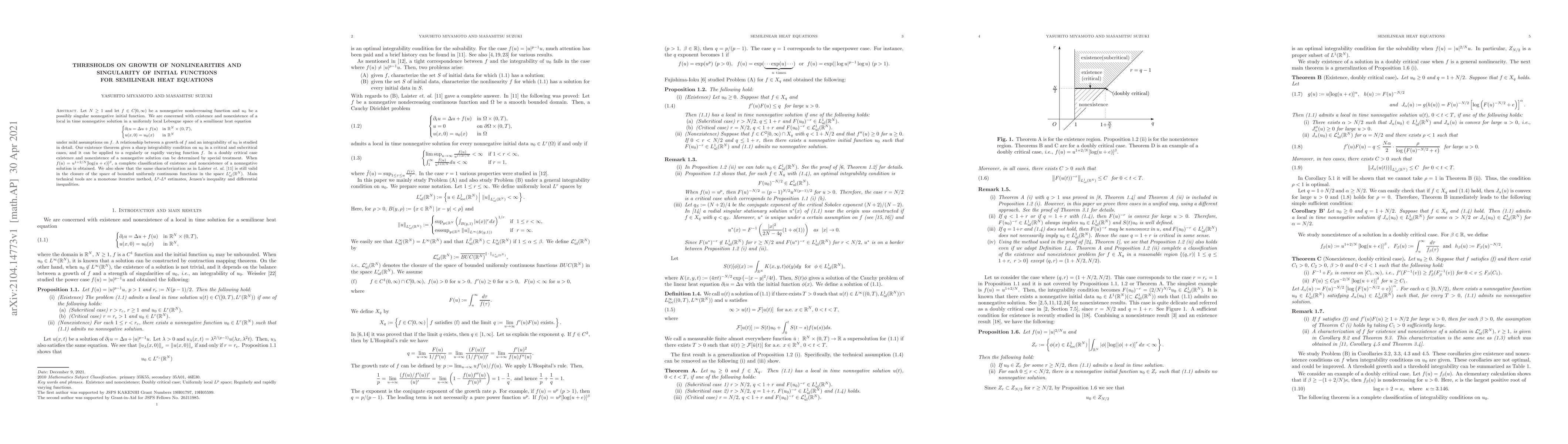 This research paper investigates the existence and nonexistence of nonnegative solutions for semilinear heat equations with possibly singular initial functions. It explores the relationship between the growth of nonlinear functions and the integrability of initial functions. The study provides sharp integrability conditions and applies to regular or rapidly varying functions. A complete classification of existence and nonexistence is given for specific functions, and the validity of certain characterizations in function spaces is confirmed. Techniques used include monotone iteration, $L^p$-$L^q$ estimates, Jensen's inequality, and differential inequalities.