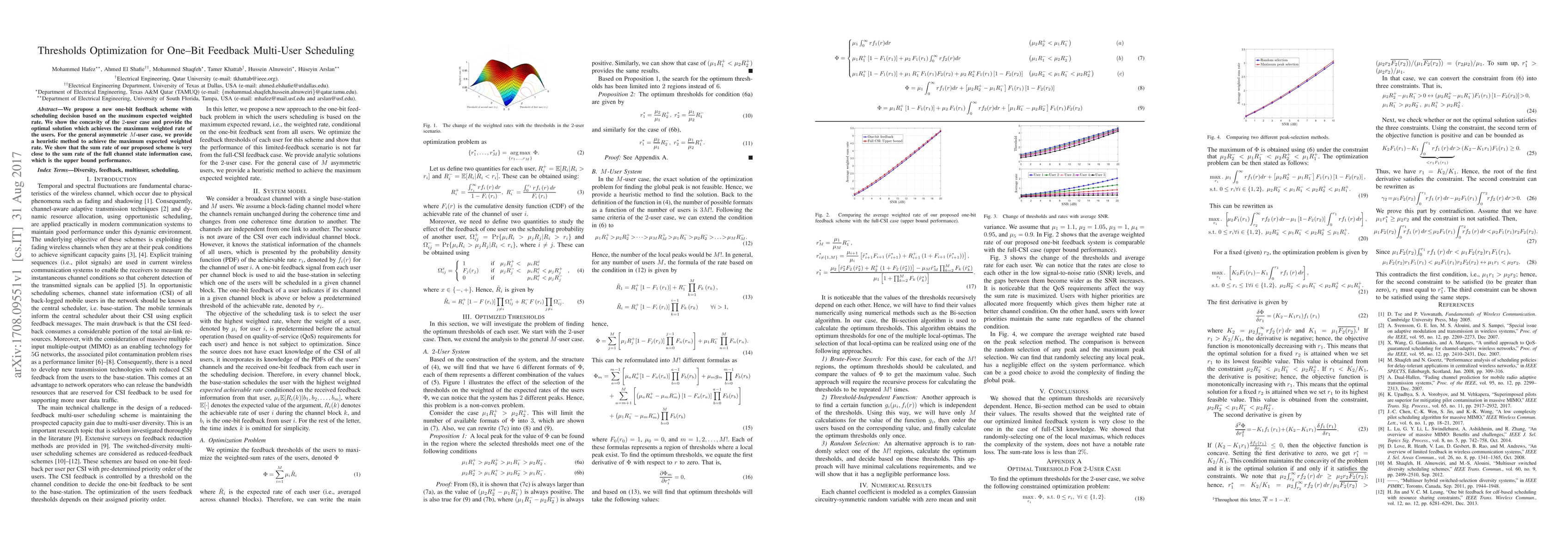 Researchers propose a new scheme for multi-user scheduling in wireless networks that uses one-bit feedback to maximize weighted rates. The scheme achieves near-optimal performance similar to using full channel state information.