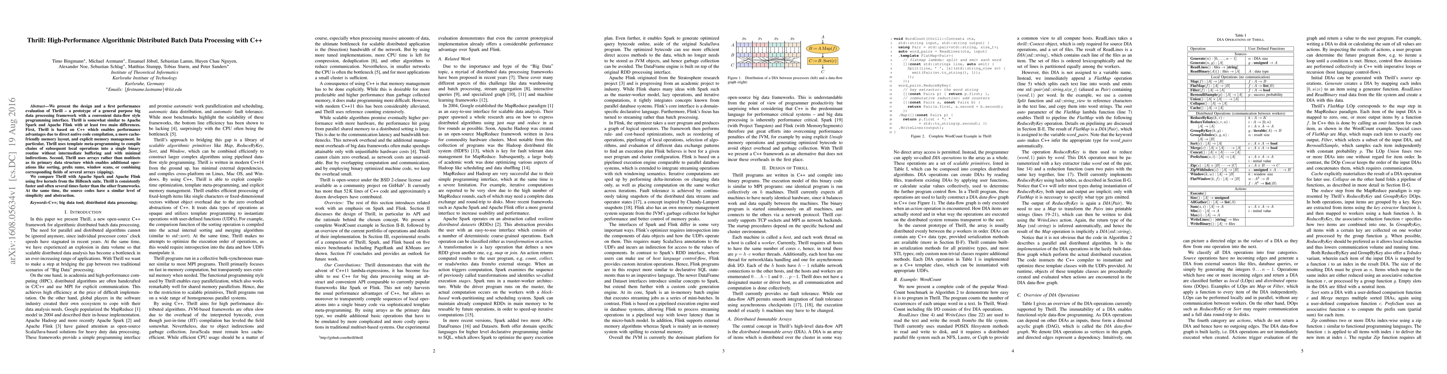 Thrill, a C++-based big data processing framework, outperforms Apache Spark and Flink in performance, while maintaining simplicity and abstraction.