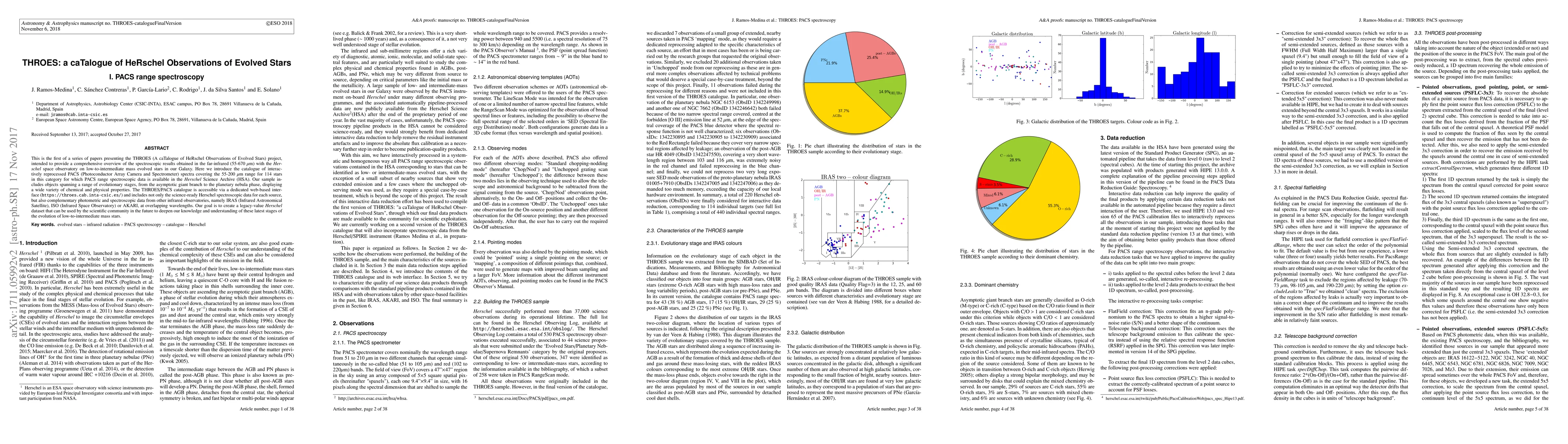 This paper introduces the THROES project, a comprehensive catalogue of Herschel observations of evolved stars, focusing on PACS spectra in the far-infrared range. The catalogue provides reprocessed PACS data for 114 stars, spanning various evolutionary stages, and aims to enhance understanding of the final stages of low-to-intermediate mass star evolution.