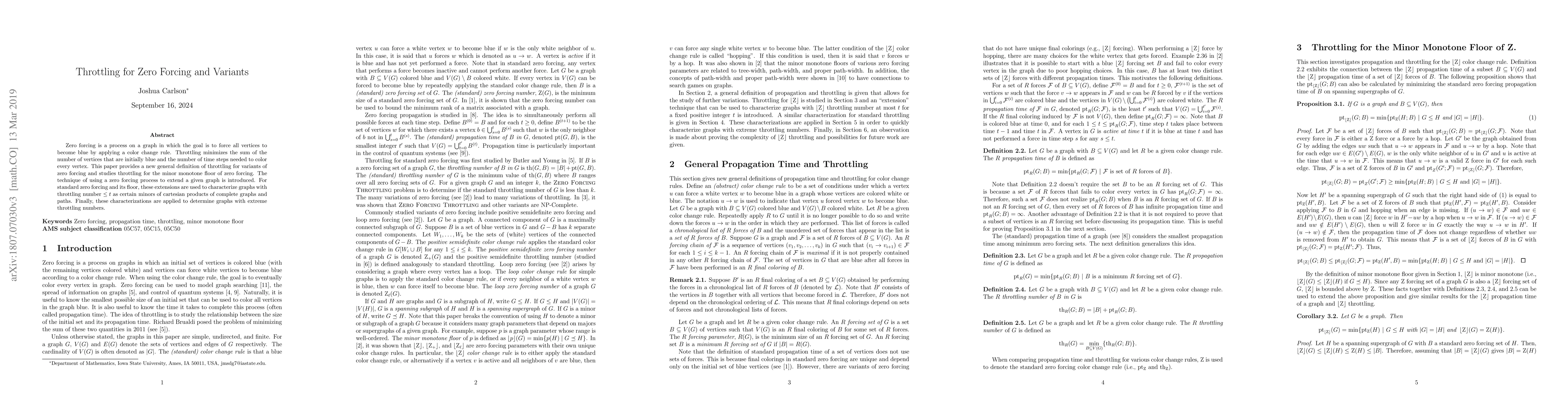 Zero forcing is a process on a graph in which the goal is to force all vertices to become blue by applying a color change rule. Throttling minimizes the sum of the number of vertices that are initially blue and the number of time steps needed to color every vertex. We introduce a new universal definition of throttling for variants of zero forcing and the study of throttling for the minor monotone floor of zero forcing. We introduce the technique of using a zero forcing process to extend a given graph. For standard zero forcing and its floor, we use these extensions to characterize graphs with throttling number $\leq t$ as certain minors of Cartesian products of complete graphs and paths. We apply these characterizations to determine graphs with extreme throttling numbers.