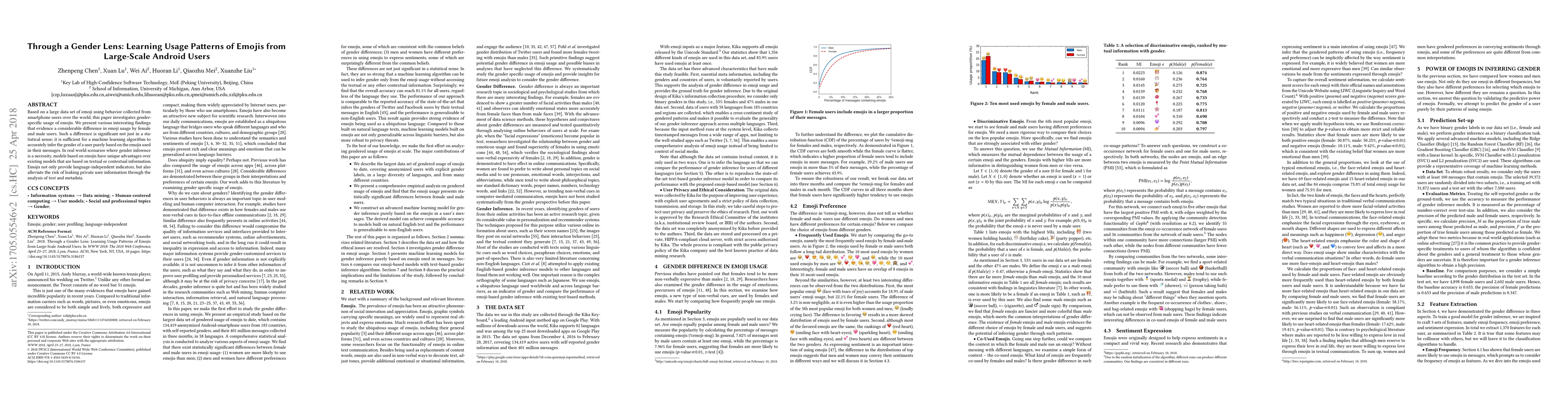 Based on a large data set of emoji using behavior collected from smartphone users over the world, this paper investigates gender-specific usage of emojis. We present various interesting findings that evidence a considerable difference in emoji usage by female and male users. Such a difference is significant not just in a statistical sense; it is sufficient for a machine learning algorithm to accurately infer the gender of a user purely based on the emojis used in their messages. In real world scenarios where gender inference is a necessity, models based on emojis have unique advantages over existing models that are based on textual or contextual information. Emojis not only provide language-independent indicators, but also alleviate the risk of leaking private user information through the analysis of text and metadata.