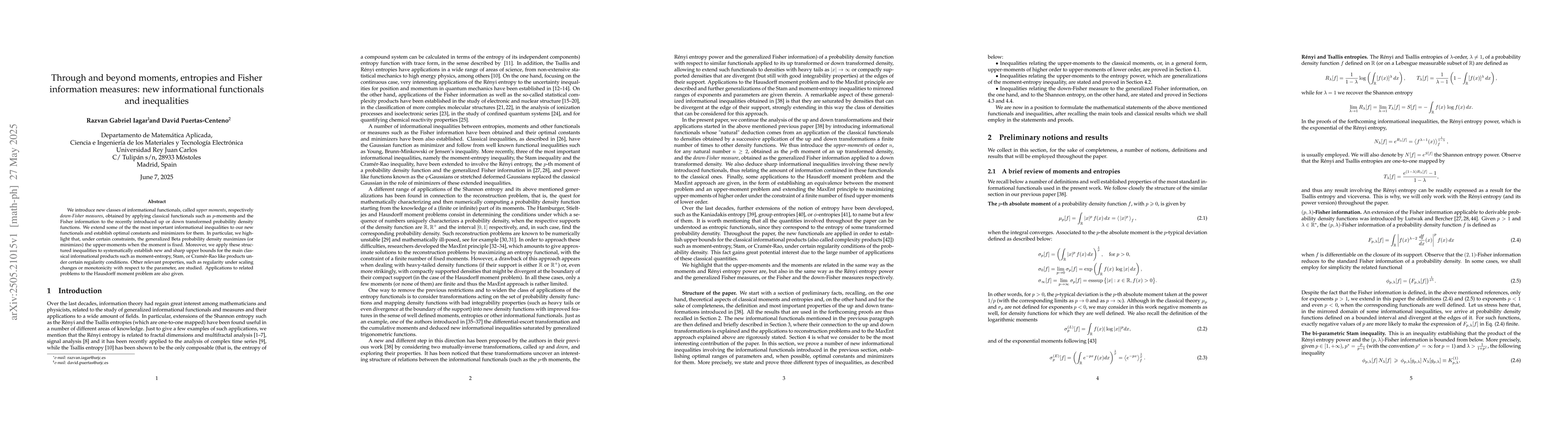 This work introduces new informational functionals and extends existing inequalities, providing fresh perspectives on moment-entropy and Fisher information relationships.
