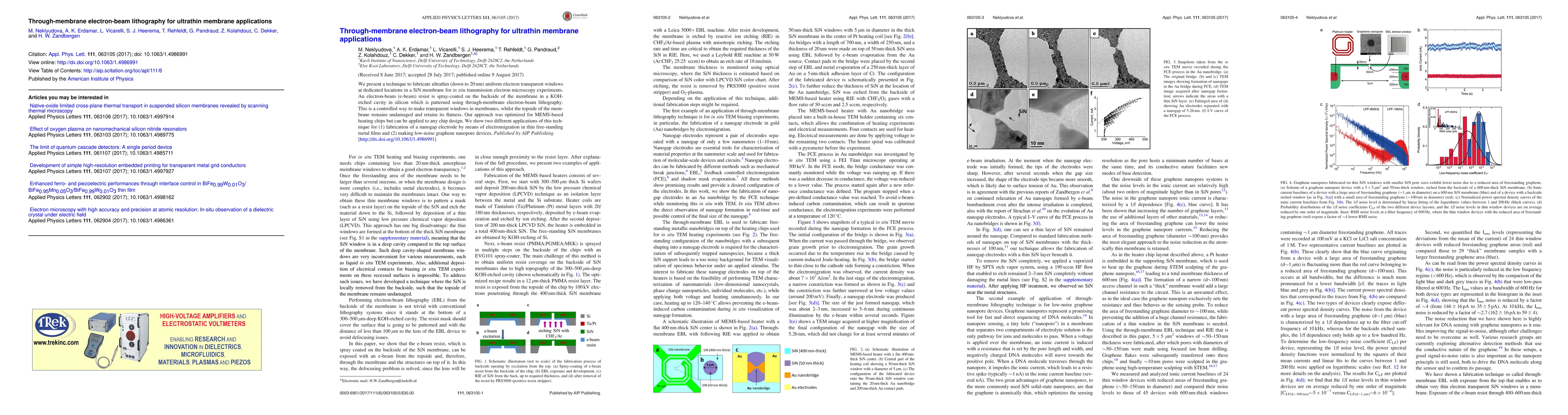 This paper introduces a method for creating ultrathin, electron-transparent windows in SiN membranes using through-membrane electron-beam lithography, enabling in situ transmission electron microscopy. The technique preserves membrane flatness and allows for applications in nanogap electrodes and low-noise graphene nanopore devices.