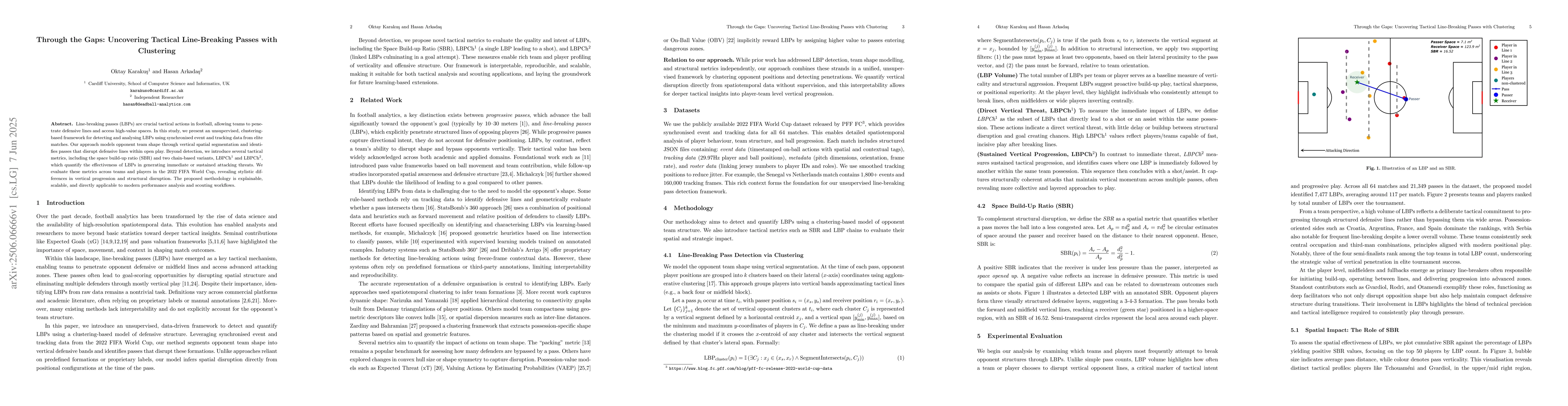 Line-breaking passes (LBPs) are crucial tactical actions in football, allowing teams to penetrate defensive lines and access high-value spaces. In this study, we present an unsupervised, clustering-based framework for detecting and analysing LBPs using synchronised event and tracking data from elite matches. Our approach models opponent team shape through vertical spatial segmentation and identifies passes that disrupt defensive lines within open play. Beyond detection, we introduce several tactical metrics, including the space build-up ratio (SBR) and two chain-based variants, LBPCh$^1$ and LBPCh$^2$, which quantify the effectiveness of LBPs in generating immediate or sustained attacking threats. We evaluate these metrics across teams and players in the 2022 FIFA World Cup, revealing stylistic differences in vertical progression and structural disruption. The proposed methodology is explainable, scalable, and directly applicable to modern performance analysis and scouting workflows.