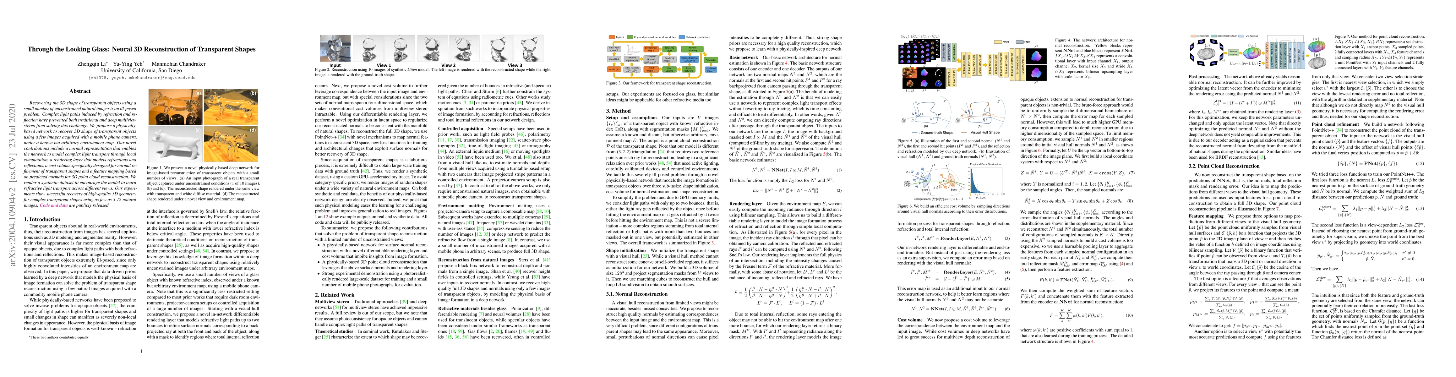 This paper proposes a physically-based neural network to reconstruct 3D shapes of transparent objects from a few unconstrained images. It introduces a novel normal representation and rendering layer for modeling complex light transport, achieving high-quality 3D geometry recovery from 5-12 images.