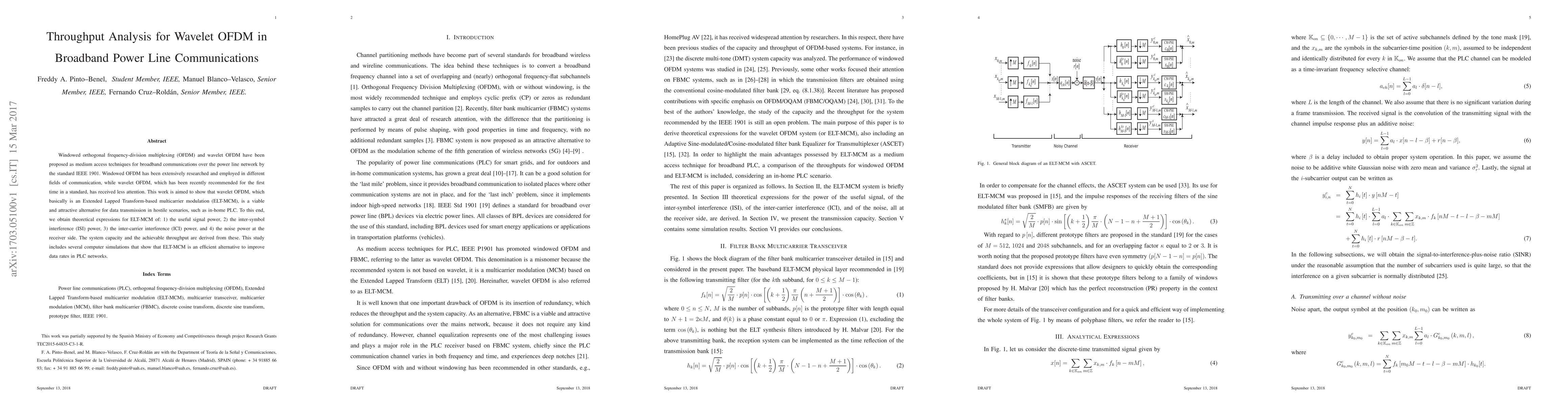 Windowed orthogonal frequency-division multiplexing (OFDM) and wavelet OFDM have been proposed as medium access techniques for broadband communications over the power line network by the standard IEEE 1901. Windowed OFDM has been extensively researched and employed in different fields of communication, while wavelet OFDM, which has been recently recommended for the first time in a standard, has received less attention. This work is aimed to show that wavelet OFDM, which basically is an Extended Lapped Transform-based multicarrier modulation (ELT-MCM), is a viable and attractive alternative for data transmission in hostile scenarios, such as in-home PLC. To this end, we obtain theoretical expressions for ELT-MCM of: 1) the useful signal power, 2) the inter-symbol interference (ISI) power, 3) the inter-carrier interference (ICI) power, and 4) the noise power at the receiver side. The system capacity and the achievable throughput are derived from these. This study includes several computer simulations that show that ELT-MCM is an efficient alternative to improve data rates in PLC networks.