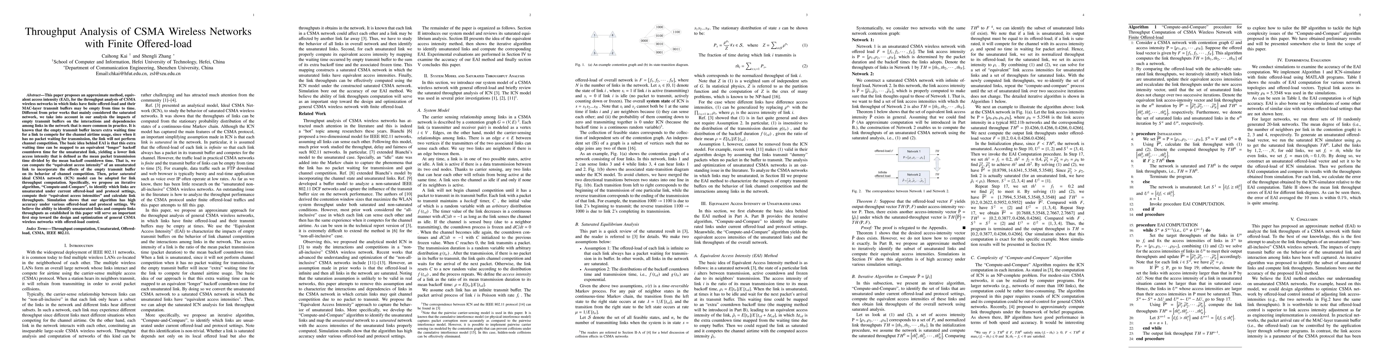 This paper introduces an approximate method called equivalent access intensity (EAI) for analyzing throughput in CSMA wireless networks with finite offered-load, considering the impact of empty transmit buffers. The proposed "Compute-and-Compare" algorithm identifies unsaturated links, computes their equivalent access intensities, and calculates link throughputs with high accuracy, offering a practical approach for network optimization.