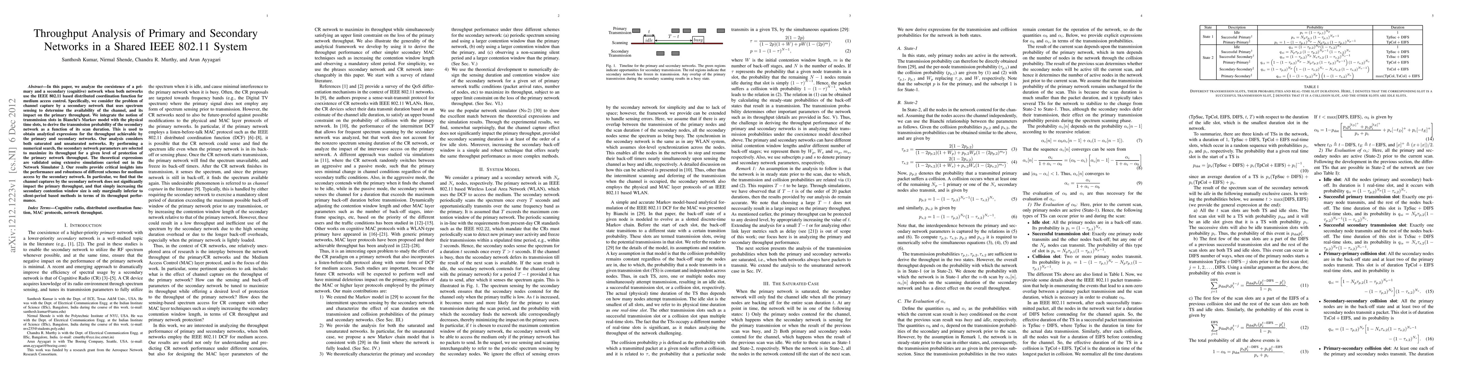 This paper analyzes the throughput of primary and secondary networks in a shared IEEE 802.11 system, focusing on the impact of secondary network channel capture on primary throughput. It derives analytical expressions for both networks' throughput and finds that secondary network captures minimally affect primary throughput, with increased contention window size being nearly as effective as silent-period methods.
