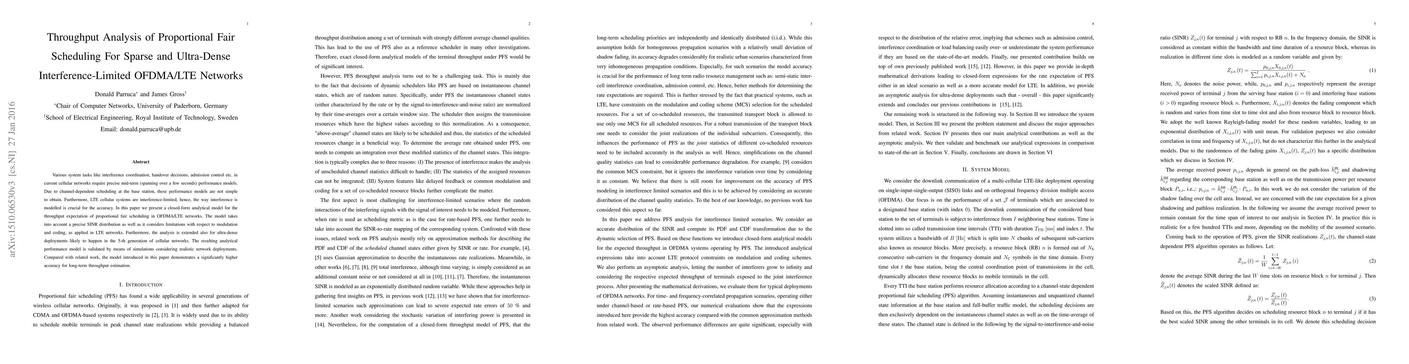 Various system tasks like interference coordination, handover decisions, admission control etc. in current cellular networks require precise mid-term (spanning over a few seconds) performance models. Due to channel-dependent scheduling at the base station, these performance models are not simple to obtain. Furthermore, LTE cellular systems are interference-limited, hence, the way interference is modelled is crucial for the accuracy. In this paper we present a closed-form analytical performance model for proportional fair scheduling in OFDMA/LTE networks. The model takes into account a precise SINR distribution into account. We refine our model with respect to uniform modulation and coding, as applied in LTE networks. Furthermore, the analytical analysis is extended also for ultra-dense deployments likely to happen in the 5-th generation of cellular networks. The resulting analytical performance model is validated by means of simulations considering realistic network deployments. Compared with related work, our model demonstrates a significantly higher accuracy for long-term throughput estimation.