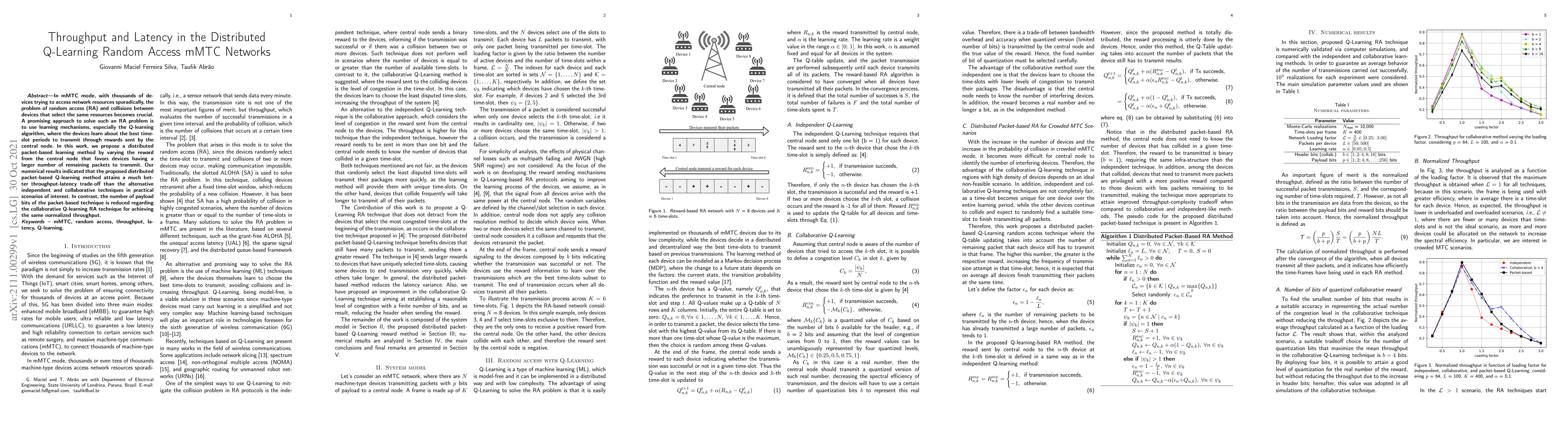 This paper proposes a distributed Q-learning method for random access in massive machine-type communication (mMTC) networks, which optimizes throughput and latency by rewarding devices with more packets to transmit. The results show improved throughput-latency trade-offs compared to independent and collaborative techniques, though at the cost of slightly fewer payload bits.