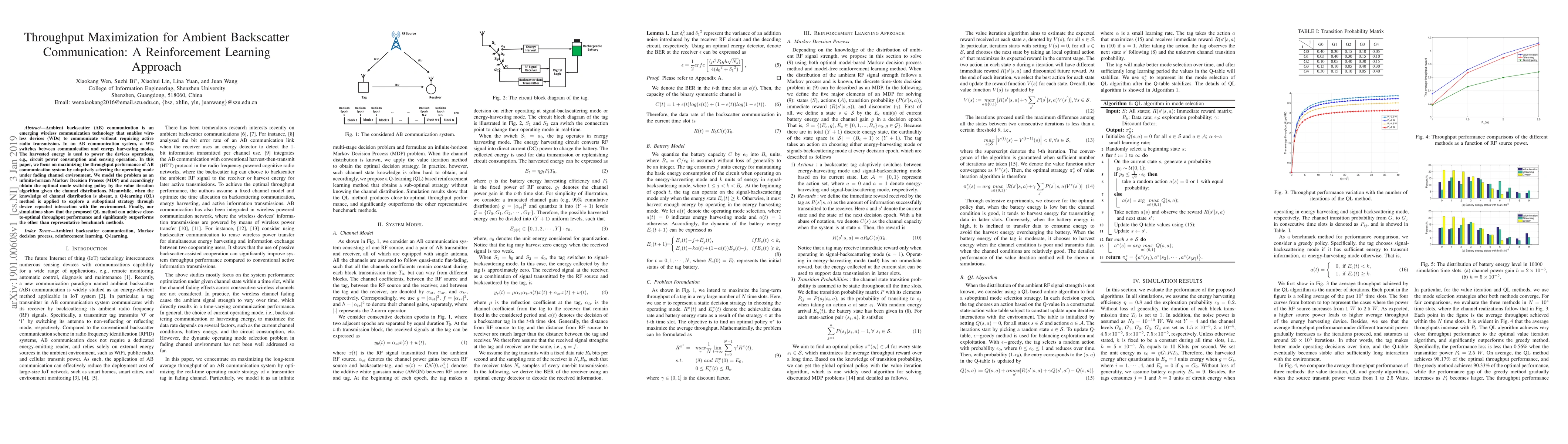 This paper proposes a reinforcement learning approach to maximize throughput in ambient backscatter communication systems, which can achieve close-to-optimal performance without channel distribution knowledge.