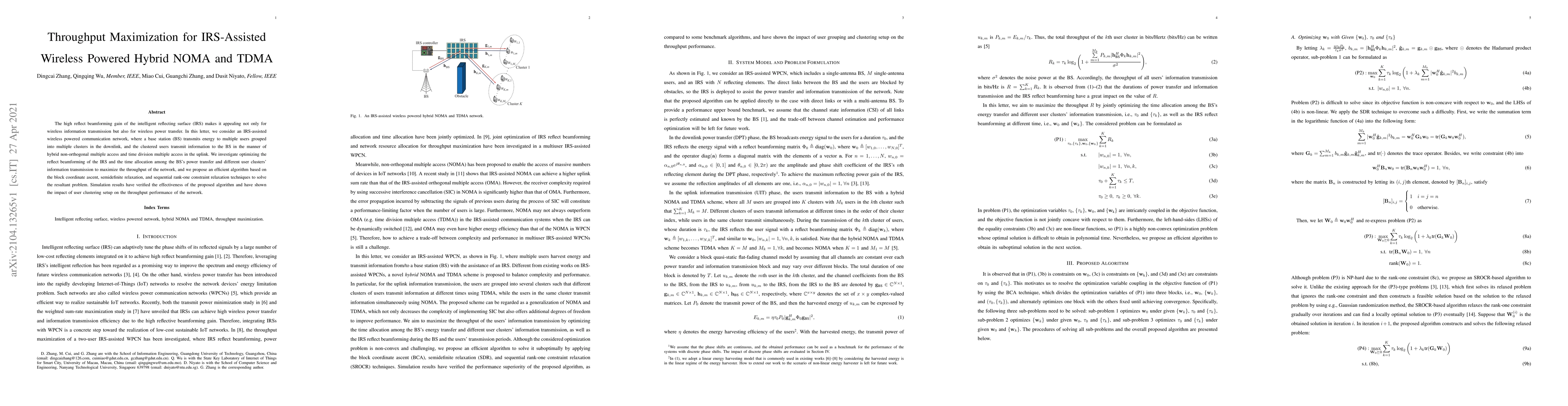 This paper proposes an algorithm to maximize throughput in an IRS-assisted wireless network using hybrid NOMA and TDMA, optimizing IRS reflect beamforming and time allocation. The algorithm employs block coordinate ascent, semidefinite relaxation, and sequential rank-one constraint relaxation techniques, demonstrating improved throughput through simulations.