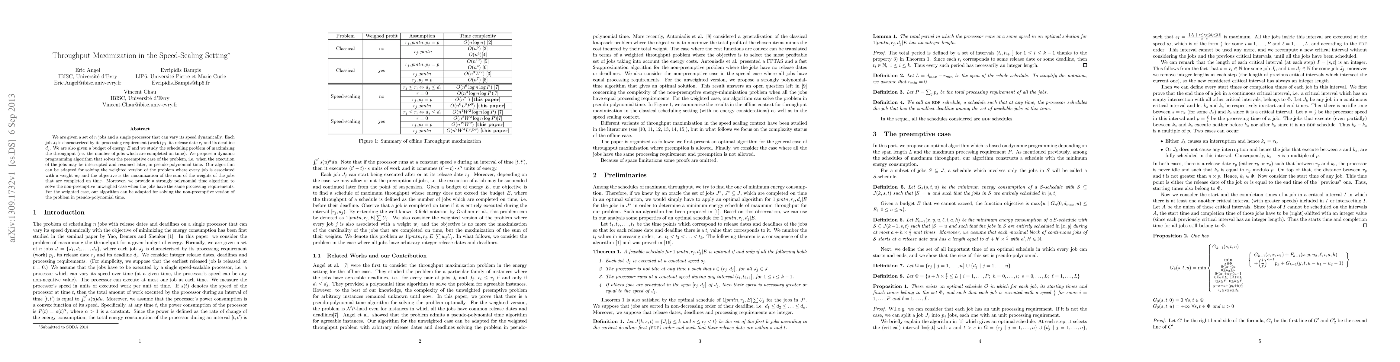 We are given a set of $n$ jobs and a single processor that can vary its speed dynamically. Each job $J_j$ is characterized by its processing requirement (work) $p_j$, its release date $r_j$ and its deadline $d_j$. We are also given a budget of energy $E$ and we study the scheduling problem of maximizing the throughput (i.e. the number of jobs which are completed on time). We propose a dynamic programming algorithm that solves the preemptive case of the problem, i.e. when the execution of the jobs may be interrupted and resumed later, in pseudo-polynomial time. Our algorithm can be adapted for solving the weighted version of the problem where every job is associated with a weight $w_j$ and the objective is the maximization of the sum of the weights of the jobs that are completed on time. Moreover, we provide a strongly polynomial time algorithm to solve the non-preemptive unweighed case when the jobs have the same processing requirements. For the weighted case, our algorithm can be adapted for solving the non-preemptive version of the problem in pseudo-polynomial time.