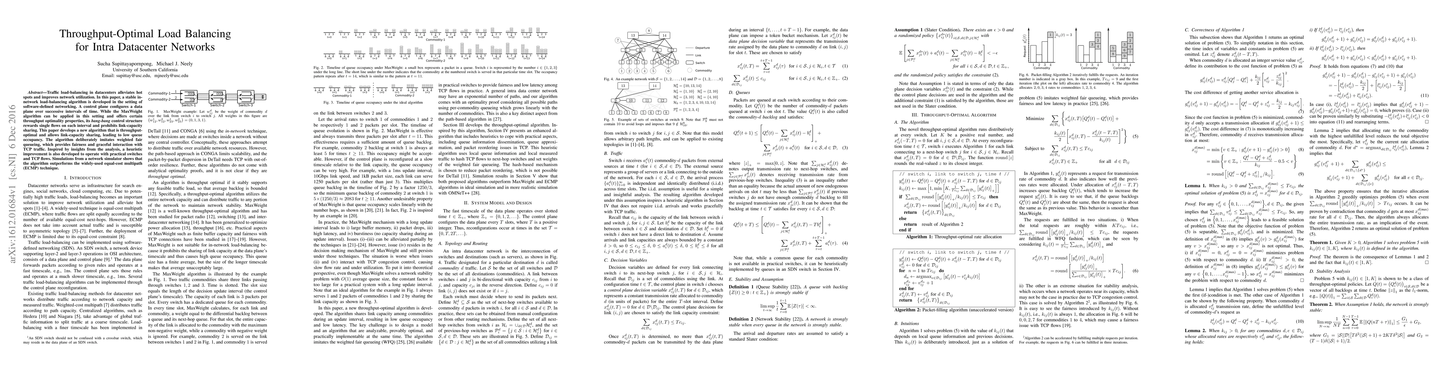 This paper proposes a new throughput-optimal load-balancing algorithm for intra-datacenter networks, which improves network utilization and allows link-capacity sharing, outperforming the equal-cost multipath (ECMP) technique in simulations. The algorithm mimics weighted fair queueing for fairness and TCP compatibility, with a heuristic improvement for practical deployment.