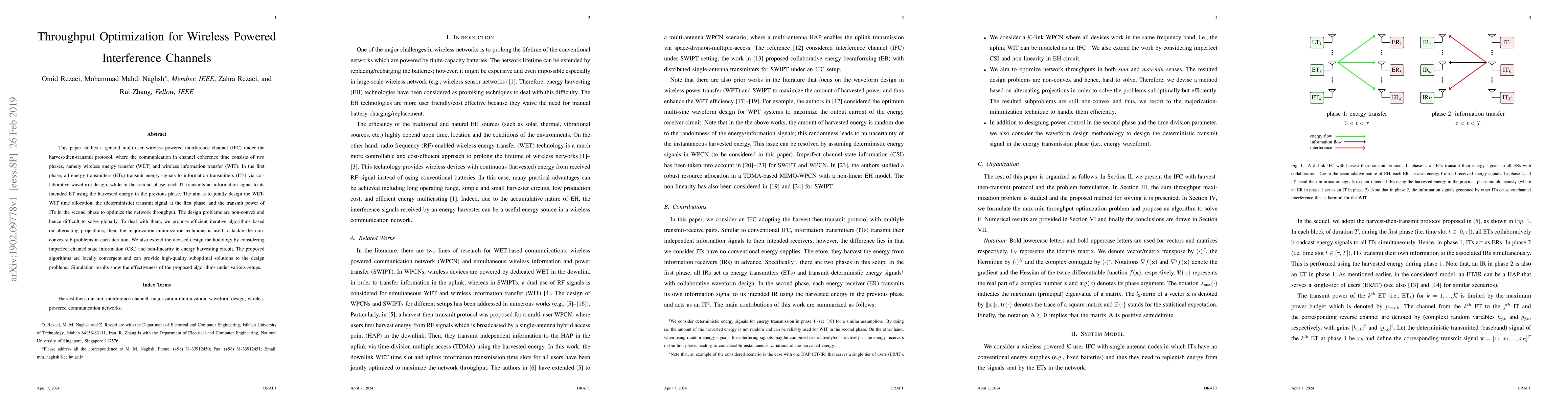 This paper studies a general multi-user wireless powered interference channel (IFC) under the harvest-then-transmit protocol, where the communication in channel coherence time consists of two phases, namely wireless energy transfer (WET) and wireless information transfer (WIT). In the first phase, all energy transmitters (ETs) transmit energy signals to information transmitters (ITs) via collaborative waveform design, while in the second phase, each IT transmits an information signal to its intended ET using the harvested energy in the previous phase. The aim is to jointly design the WET-WIT time allocation, the (deterministic) transmit signal at the first phase, and the transmit power of ITs in the second phase to optimize the network throughput. The design problems are non-convex and hence difficult to solve globally. To deal with them, we propose efficient iterative algorithms based on alternating projections; then, the majorization-minimization technique is used to tackle the nonconvex sub-problems in each iteration. We also extend the devised design methodology by considering imperfect channel state information (CSI) and non-linearity in energy harvesting circuit. The proposed algorithms are locally convergent and can provide high-quality suboptimal solutions to the design problems. Simulation results show the effectiveness of the proposed algorithms under various setups.