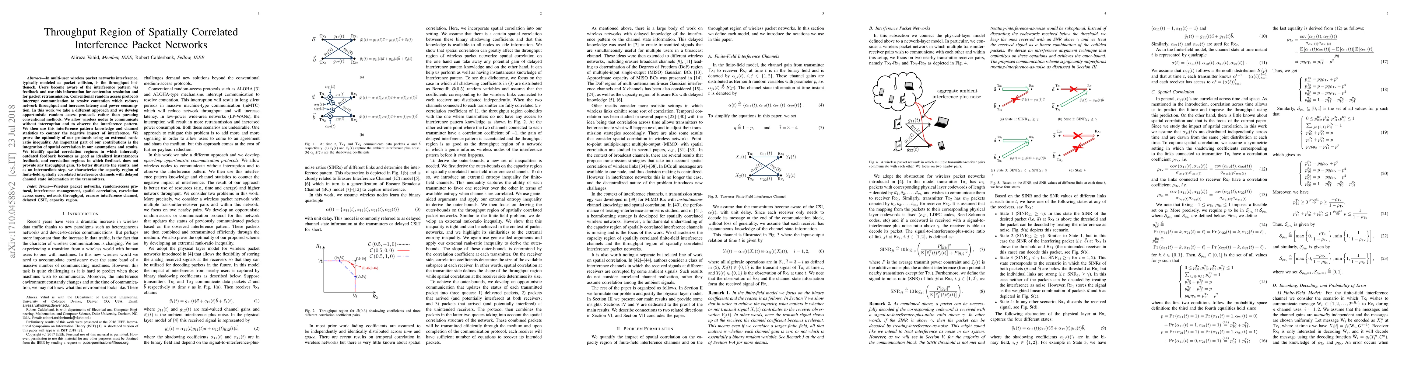 In multi-user wireless packet networks interference, typically modeled as packet collision, is the throughput bottleneck. Users become aware of the interference pattern via feedback and use this information for contention resolution and for packet retransmission. Conventional random access protocols interrupt communication to resolve contention which reduces network throughput and increases latency and power consumption. In this work we take a different approach and we develop opportunistic random access protocols rather than pursuing conventional methods. We allow wireless nodes to communicate without interruption and to observe the interference pattern. We then use this interference pattern knowledge and channel statistics to counter the negative impact of interference. We prove the optimality of our protocols using an extremal rank-ratio inequality. An important part of our contributions is the integration of spatial correlation in our assumptions and results. We identify spatial correlation regimes in which inherently outdated feedback becomes as good as idealized instantaneous feedback, and correlation regimes in which feedback does not provide any throughput gain. To better illustrate the results, and as an intermediate step, we characterize the capacity region of finite-field spatially correlated interference channels with delayed channel state information at the transmitters.