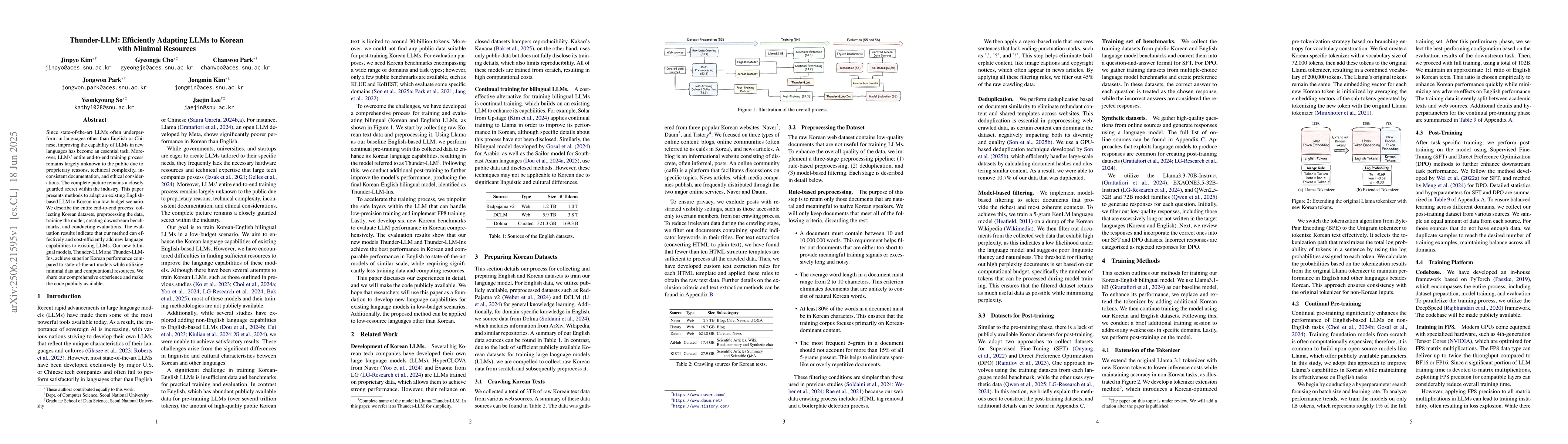 The paper details an end-to-end process for adapting an English-based LLM to Korean with minimal resources, including dataset collection, preprocessing, model training, and benchmark creation.