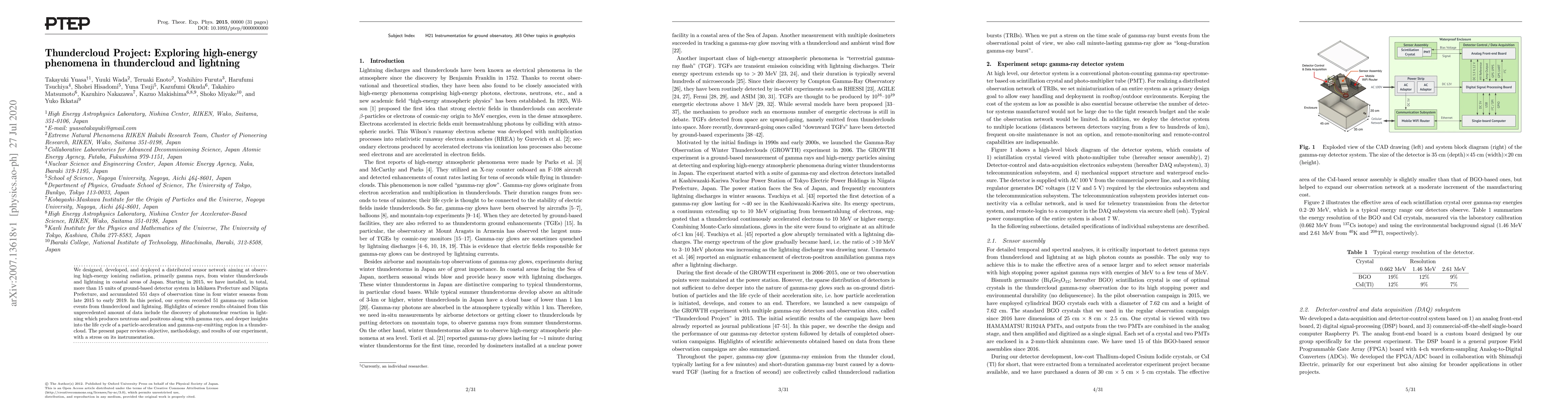 The Thundercloud Project deployed a distributed sensor network to observe high-energy gamma rays from winter thunderclouds and lightning in Japan, recording 51 gamma-ray events and discovering photonuclear reactions producing neutrons and positrons. The study provides deeper insights into particle acceleration in thunderclouds.