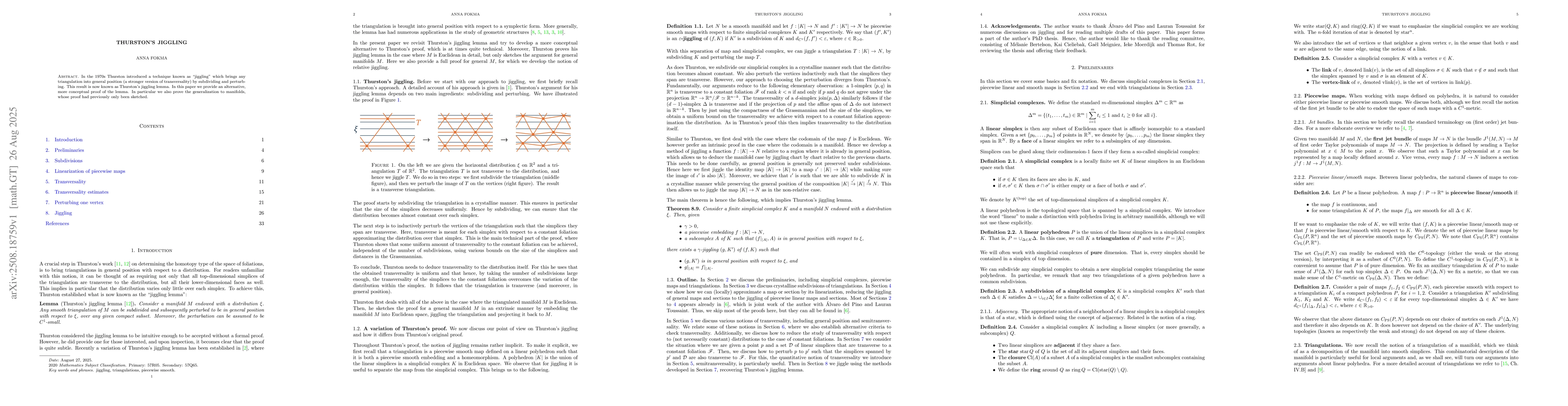 In the 1970s Thurston introduced a technique known as ``jiggling'' which brings any triangulation into general position (a stronger version of transversality) by subdividing and perturbing. This result is now known as Thurston's jiggling lemma. In this paper we provide an alternative, more conceptual proof of the lemma. In particular we also prove the generalization to manifolds, whose proof had previously only been sketched.