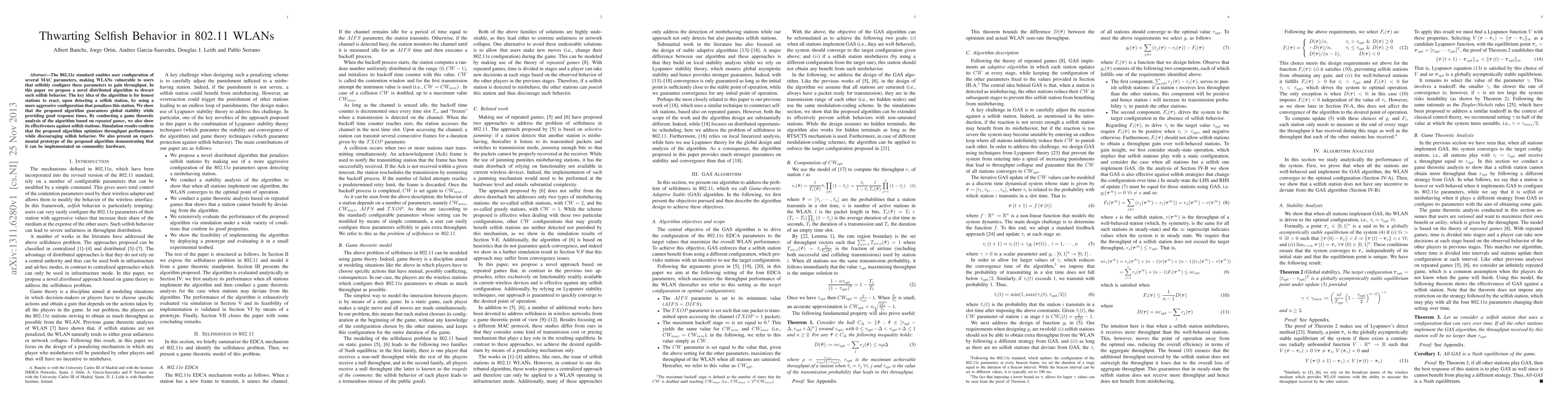 The 802.11e standard enables user configuration of several MAC parameters, making WLANs vulnerable to users that selfishly configure these parameters to gain throughput. In this paper we propose a novel distributed algorithm to thwart such selfish behavior. The key idea of the algorithm is for honest stations to react, upon detecting a selfish station, by using a more aggressive configuration that penalizes this station. We show that the proposed algorithm guarantees global stability while providing good response times. By conducting a game theoretic analysis of the algorithm based on repeated games, we also show its effectiveness against selfish stations. Simulation results confirm that the proposed algorithm optimizes throughput performance while discouraging selfish behavior. We also present an experimental prototype of the proposed algorithm demonstrating that it can be implemented on commodity hardware.