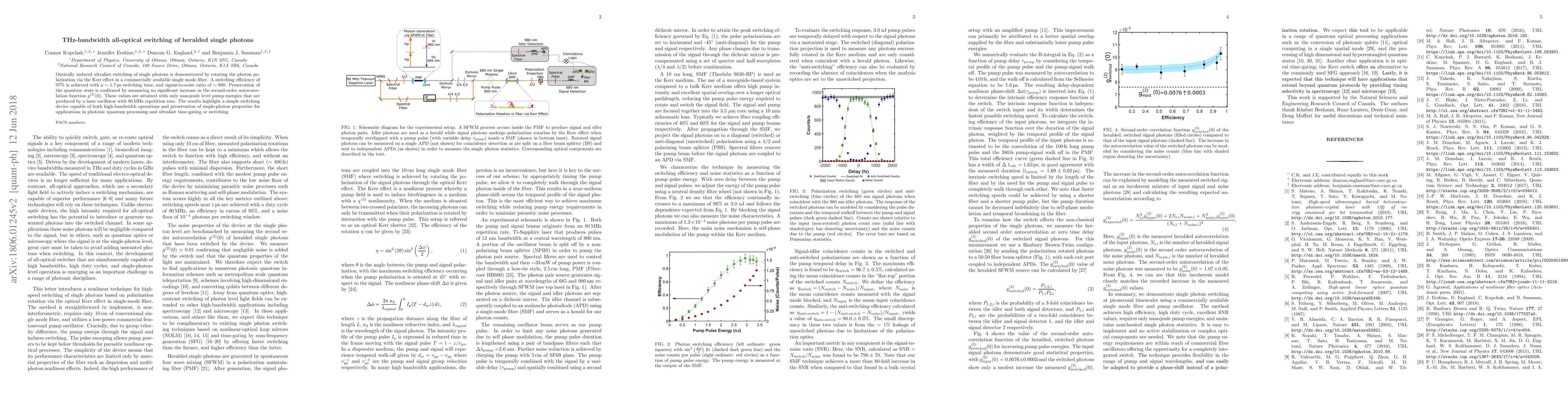 The research utilizes a single-mode fiber and a Ti:Sapphire laser oscillator to achieve all-optical switching of heralded single photons via the Kerr effect, with a 1.7 ps switching time and 97% efficiency.