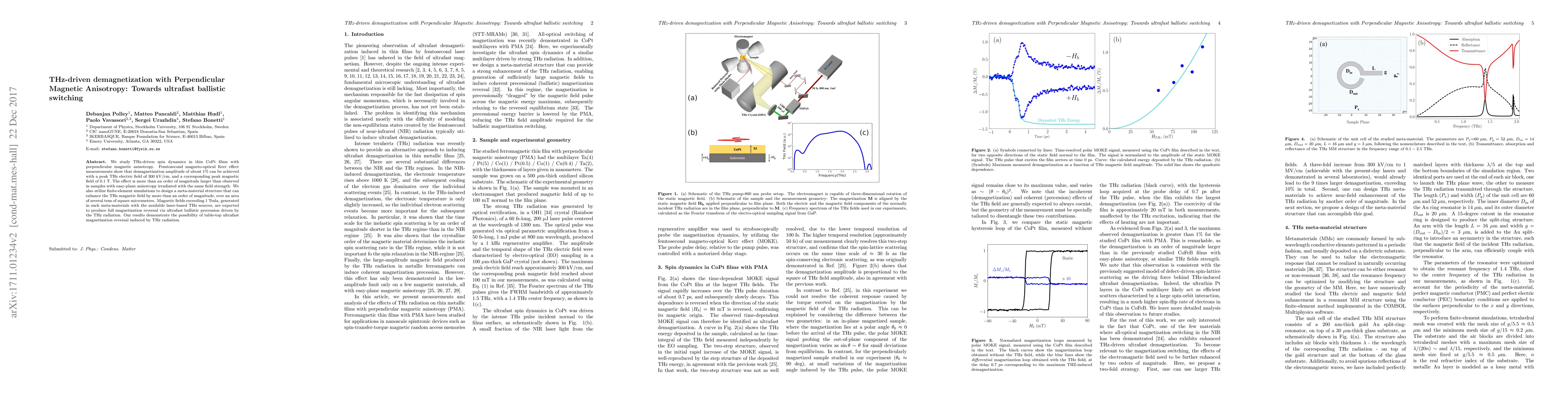 This paper investigates THz-driven spin dynamics in CoPt films with perpendicular magnetic anisotropy, achieving demagnetization amplitudes of about $1\%$ with a peak THz electric field. Simulations propose a meta-material structure to enhance THz magnetic fields, potentially enabling full magnetization reversal via ultrafast ballistic precession.