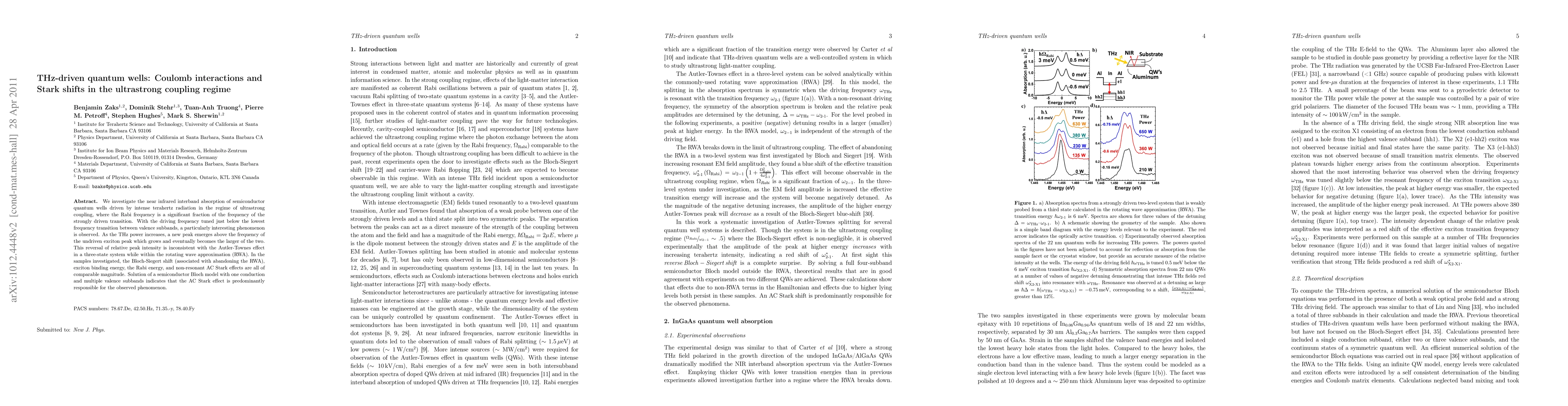 We investigate the near infrared interband absorption of semiconductor quantum wells driven by intense terahertz radiation in the regime of ultrastrong coupling, where the Rabi frequency is a significant fraction of the frequency of the strongly driven transition. With the driving frequency tuned just below the lowest frequency transition between valence subbands, a particularly interesting phenomenon is observed. As the THz power increases, a new peak emerges above the frequency of the undriven exciton peak which grows and eventually becomes the larger of the two. This reversal of relative peak intensity is inconsistent with the Autler-Townes effect in a three-state system while within the rotating wave approximation (RWA). In the samples investigated, the Bloch-Siegert shift (associated with abandoning the RWA), exciton binding energy, the Rabi energy, and non-resonant AC Stark effects are all of comparable magnitude. Solution of a semiconductor Bloch model with one conduction and multiple valence subbands indicates that the AC Stark effect is predominantly responsible for the observed phenomenon.