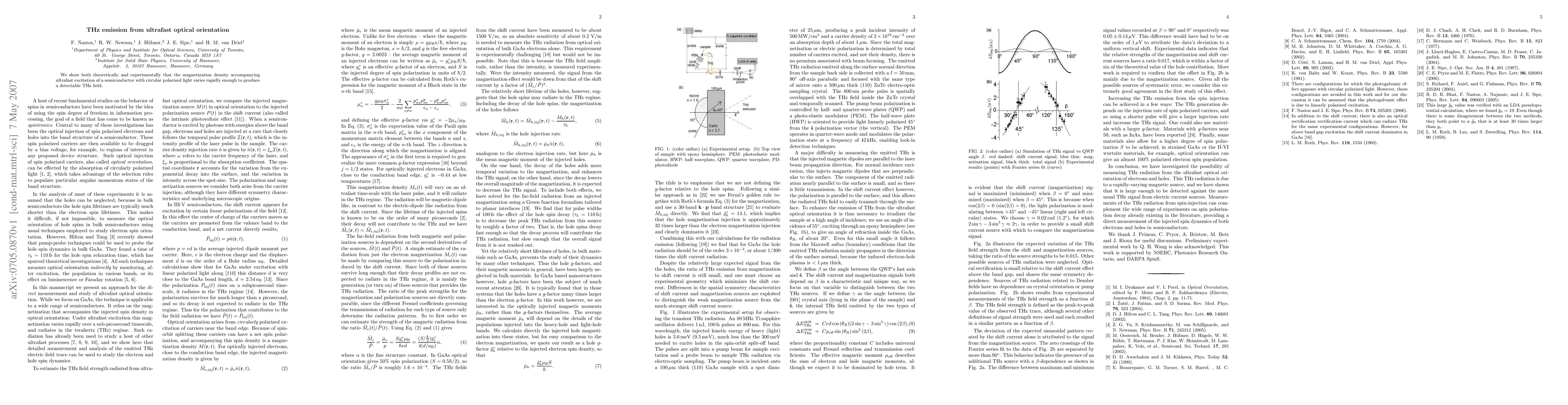 Summary: This research demonstrates both theoretically and experimentally that ultrafast excitation of a semiconductor with circularly polarized light induces a rapid change in magnetization density, resulting in detectable THz emission. The findings highlight the potential for generating THz fields via optical orientation.