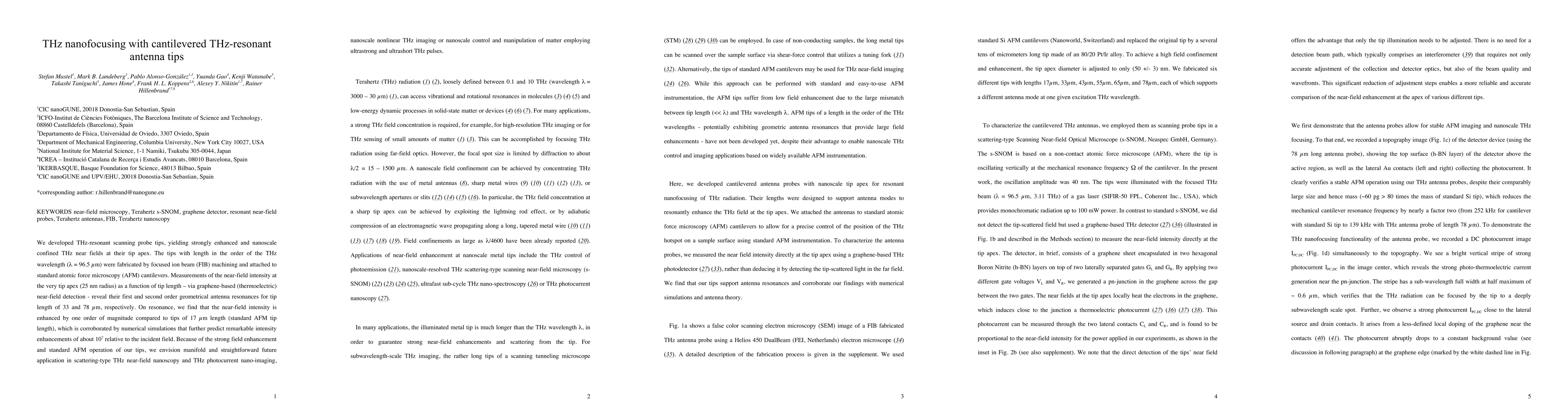 This paper presents THz-resonant scanning probe tips fabricated via FIB machining, which achieve significantly enhanced and confined THz near-fields at their apex. The tips demonstrate first and second order resonances, resulting in near-field intensity enhancements of up to one order of magnitude compared to standard AFM tips, with potential applications in THz nanoscopy and nanoscale manipulation.
