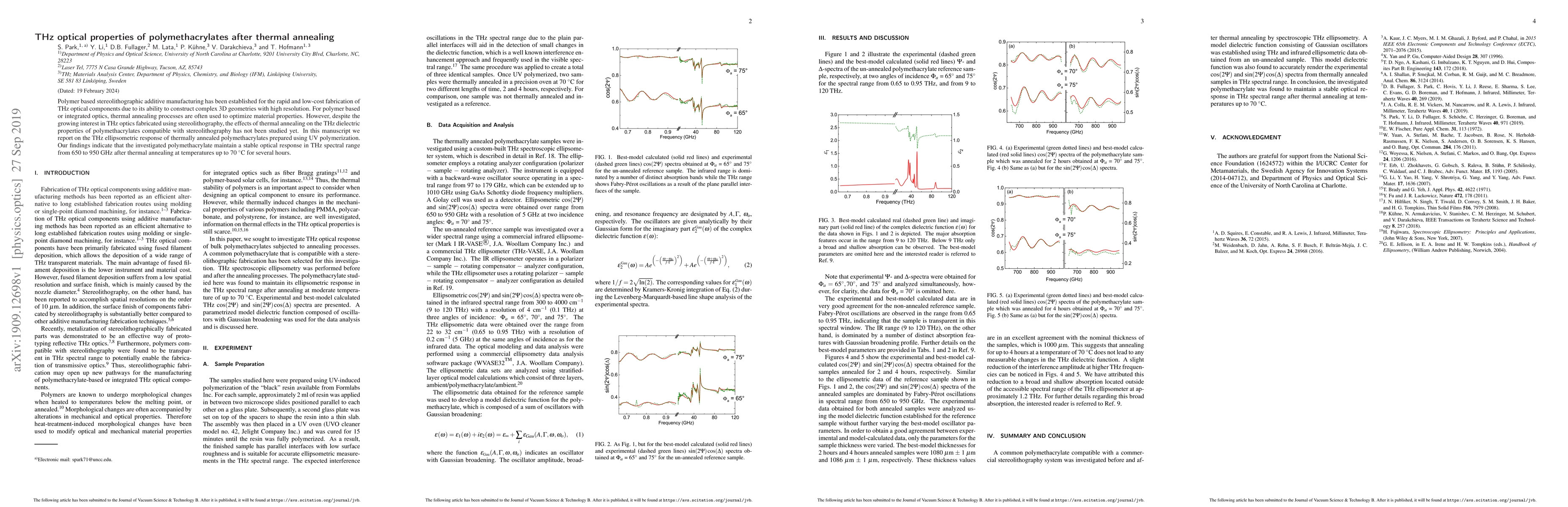 Polymer based stereolithographic additive manufacturing has been established for the rapid and low-cost fabrication of THz optical components due to its ability to construct complex 3D geometries with high resolution. For polymer based or integrated optics, thermal annealing processes are often used to optimize material properties. However, despite the growing interest in THz optics fabricated using stereolithography, the effects of thermal annealing on the THz dielectric properties of polymethacrylates compatible with stereolithography has not been studied yet. In this manuscript we report on the THz ellipsometric response of thermally annealed polymethacrylates prepared using UV polymerization. Our findings indicate that the investigated polymethacrylate maintain a stable optical response in THz spectral range from 650 to 950 GHz after thermal annealing at temperatures up to 70 degrees C for several hours.