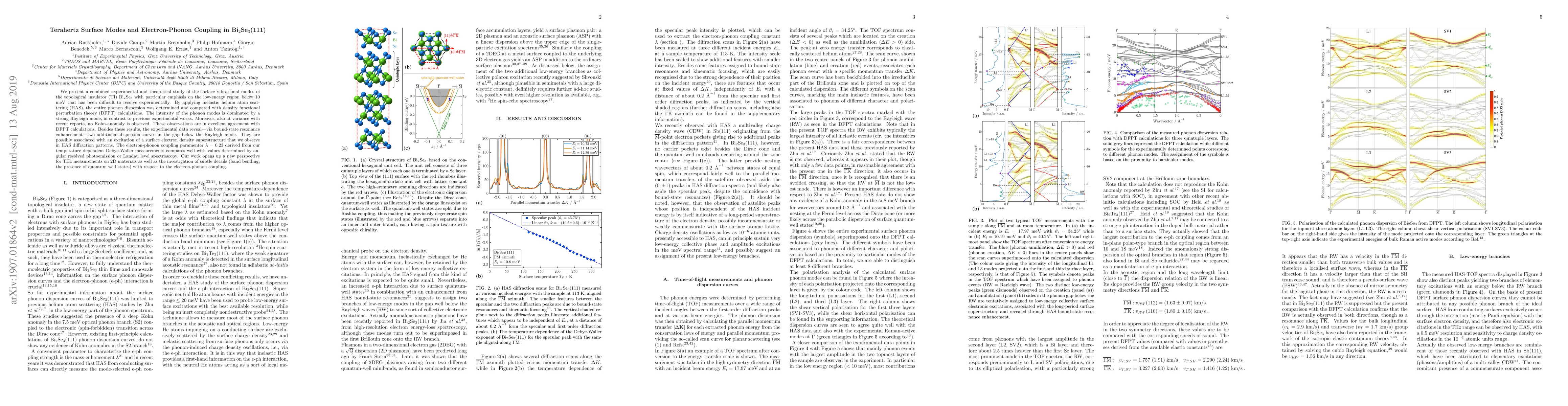 We present a combined experimental and theoretical study of the surface vibrational modes of the topological insulator (TI) Bi$_2$Se$_3$ with particular emphasis on the low-energy region below 10 meV that has been difficult to resolve experimentally. By applying inelastic helium atom scattering (HAS), the entire phonon dispersion was determined and compared with density functional perturbation theory (DFPT) calculations. The intensity of the phonon modes is dominated by a strong Rayleigh mode, in contrast to previous experimental works. Moreover, also at variance with recent reports, no Kohn-anomaly is observed. These observations are in excellent agreement with DFPT calculations. Besides these results, the experimental data reveal$-$via bound-state resonance enhancement$-$two additional dispersion curves in the gap below the Rayleigh mode. They are possibly associated with an excitation of a surface electron density superstructure that we observe in HAS diffraction patterns. The electron-phonon coupling paramenter $\lambda$ = 0.23 derived from our temperature dependent Debye-Waller measurements compares well with values determined by angular resolved photoemission or Landau level spectroscopy. Our work opens up a new perspective for THz measurements on 2D materials as well as the investigation of subtle details (band bending, the presence of quantum well states) with respect to the electron-phonon coupling.