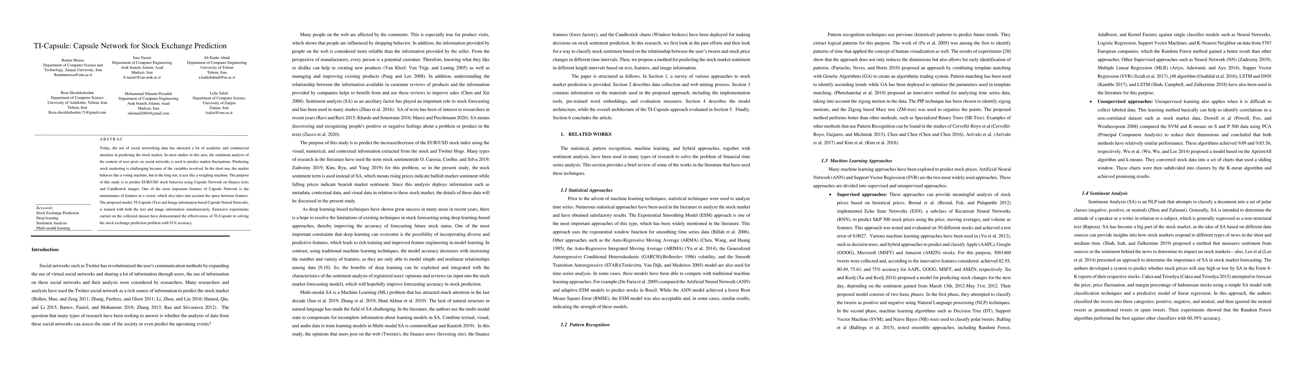 This study proposes TI-Capsule, a Capsule Network model for predicting EUR/USD stock behavior using both finance texts and Candlestick images. The model demonstrates 91% accuracy, highlighting the effectiveness of integrating text and image information for stock exchange prediction.