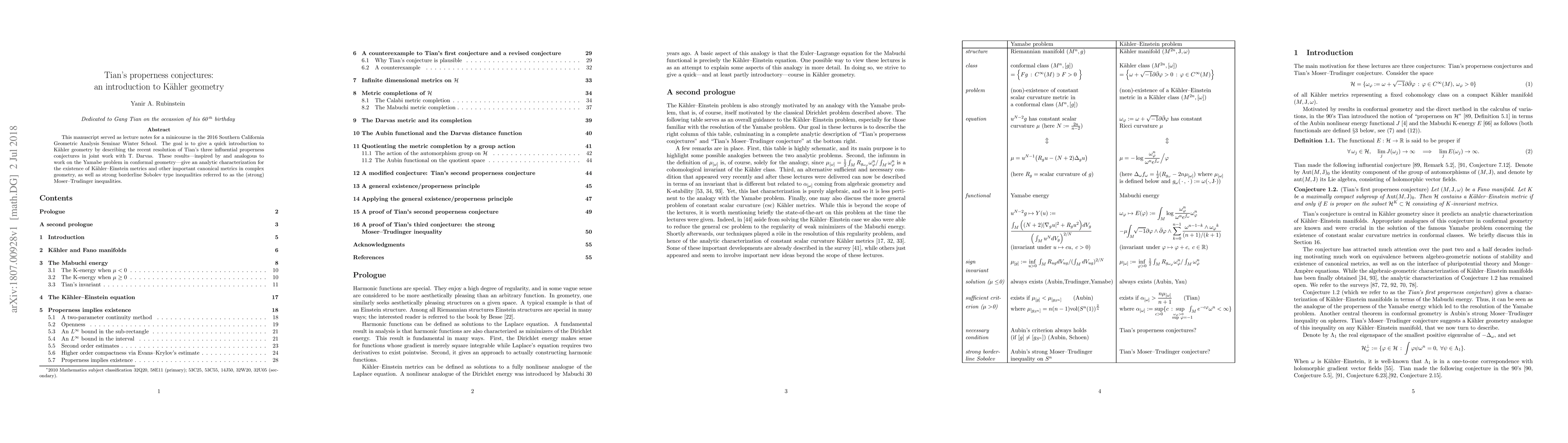 This manuscript served as lecture notes for a mini-course in the 2016 Southern California Geometric Analysis Seminar Winter School. The goal is to give a quick introduction to Kahler geometry by describing the recent resolution of Tian's three influential properness conjectures in joint work with T. Darvas. These results---inspired by and analogous to work on the Yamabe problem in conformal geometry---give an analytic characterization for the existence of Kahler--Einstein metrics and other important canonical metrics in complex geometry, as well as strong borderline Sobolev type inequalities referred to as the (strong) Moser--Trudinger inequalities.