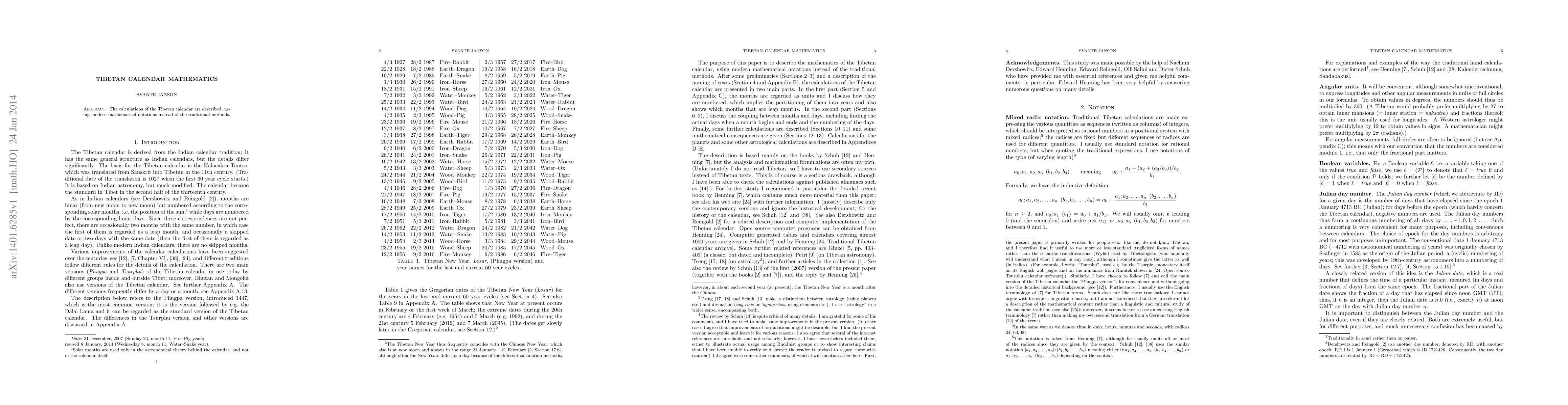 Summary: This paper explores the mathematical principles behind the Tibetan calendar, reinterpreting traditional calculations using modern mathematical notations for clarity and precision.