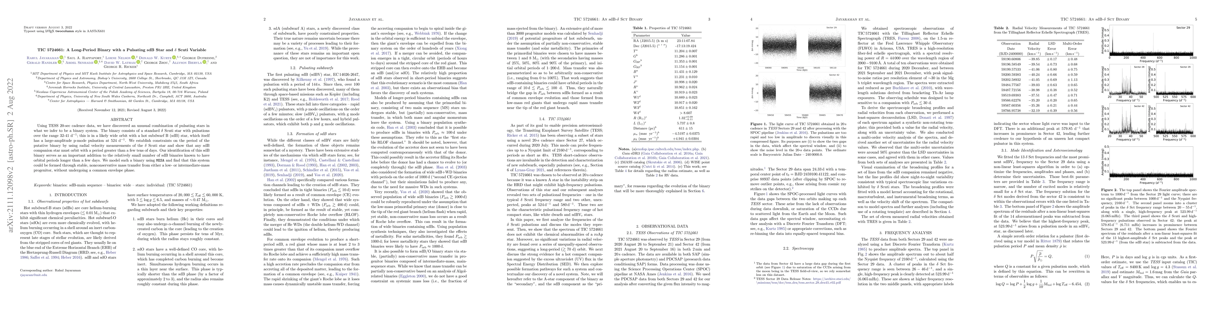 This research identifies a long-period binary system featuring a pulsating δ Scuti star and an sdB star, discovered through TESS data. The sdB star exhibits large-amplitude p-mode pulsations, while the δ Scuti star shows pulsations in the range of 32-41 d$^{-1}$. The system's formation likely involved stable, nonconservative mass transfer from a progenitor star.