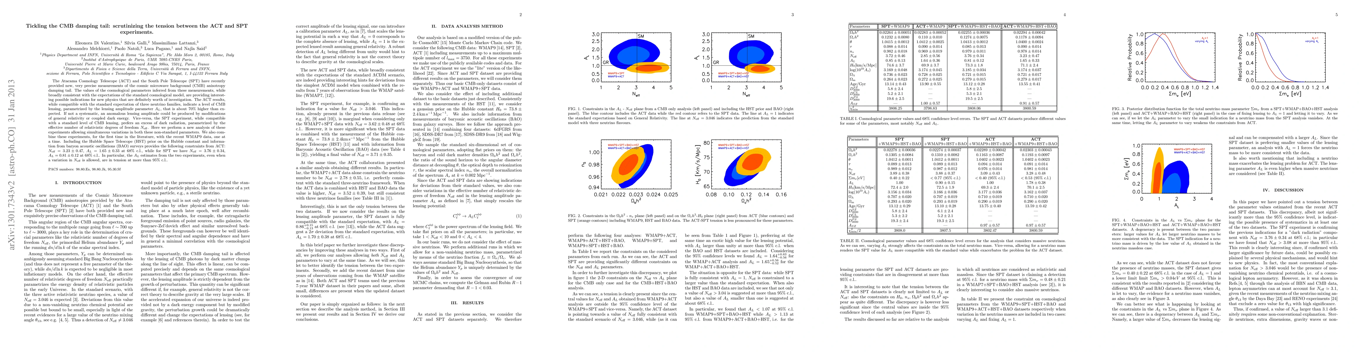 The Atacama Cosmology Telescope (ACT) and the South Pole Telescope (SPT) have recently provided new, very precise measurements of the cosmic microwave background (CMB) anisotropy damping tail. The values of the cosmological parameters inferred from these measurements, while broadly consistent with the expectations of the standard cosmological model, are providing interesting possible indications for new physics that are definitely worth of investigation. The ACT results, while compatible with the standard expectation of three neutrino families, indicate a level of CMB lensing, parametrized by the lensing amplitude parameter A_L, that is about 70% higher than expected. If not a systematic, this anomalous lensing amplitude could be produced by modifications of general relativity or coupled dark energy. Vice-versa, the SPT experiment, while compatible with a standard level of CMB lensing, prefers an excess of dark radiation, parametrized by the effective number of relativistic degrees of freedom N_eff. Here we perform a new analysis of these experiments allowing simultaneous variations in both these, non-standard, parameters. We also combine these experiments, for the first time in the literature, with the recent WMAP9 data, one at a time. Including the Hubble Space Telescope (HST) prior on the Hubble constant and information from baryon acoustic oscillations (BAO) surveys provides the following constraints from ACT: N_eff=3.23\pm0.47, A_L=1.65\pm0.33 at 68% c.l., while for SPT we have N_eff=3.76\pm0.34, A_L=0.81\pm0.12 at 68% c.l.. In particular, the A_L estimates from the two experiments, even when a variation in N_eff is allowed, are in tension at more than 95% c.l..