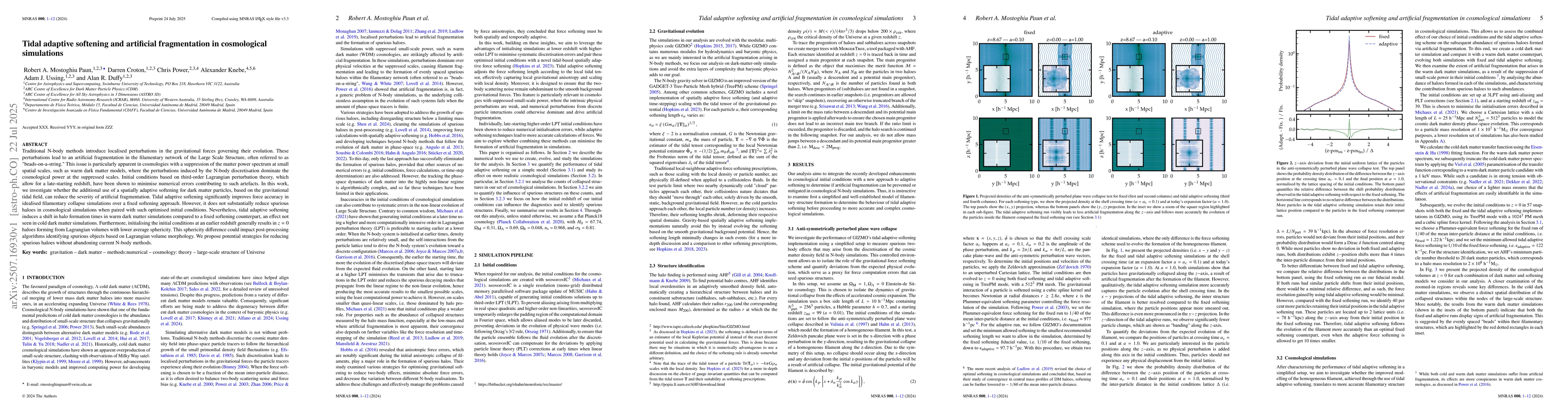 Traditional N-body methods introduce localised perturbations in the gravitational forces governing their evolution. These perturbations lead to an artificial fragmentation in the filamentary network of the Large Scale Structure, often referred to as "beads-on-a-string." This issue is particularly apparent in cosmologies with a suppression of the matter power spectrum at small spatial scales, such as warm dark matter models, where the perturbations induced by the N-body discretisation dominate the cosmological power at the suppressed scales. Initial conditions based on third-order Lagrangian perturbation theory, which allow for a late-starting redshift, have been shown to minimise numerical errors contributing to such artefacts. In this work, we investigate whether the additional use of a spatially adaptive softening for dark matter particles, based on the gravitational tidal field, can reduce the severity of artificial fragmentation. Tidal adaptive softening significantly improves force accuracy in idealised filamentary collapse simulations over a fixed softening approach. However, it does not substantially reduce spurious haloes in cosmological simulations when paired with such optimised initial conditions. Nevertheless, tidal adaptive softening induces a shift in halo formation times in warm dark matter simulations compared to a fixed softening counterpart, an effect not seen in cold dark matter simulations. Furthermore, initialising the initial conditions at an earlier redshift generally results in z=0 haloes forming from Lagrangian volumes with lower average sphericity. This sphericity difference could impact post-processing algorithms identifying spurious objects based on Lagrangian volume morphology. We propose potential strategies for reducing spurious haloes without abandoning current N-body methods.