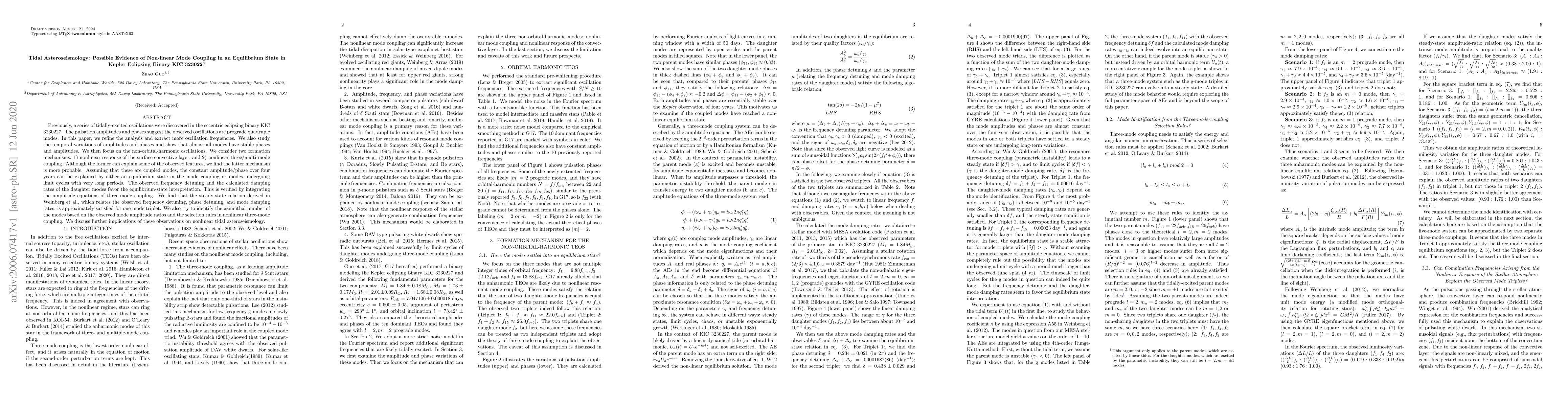 This paper refines the analysis of tidally-excited oscillations in the binary system KIC 3230227, finding evidence for non-linear mode coupling rather than a nonlinear response in the surface convective layer. The observed stable amplitudes and phases suggest an equilibrium state in the mode coupling, supported by frequency detuning and damping rates.