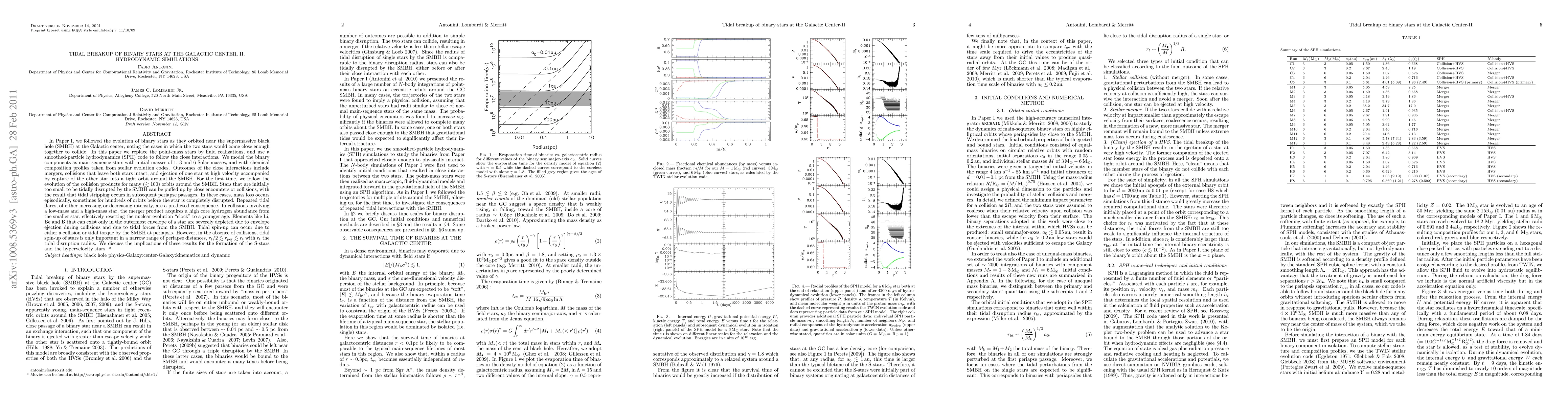 In Paper I, we followed the evolution of binary stars as they orbited near the supermassive black hole (SMBH) at the Galactic center, noting the cases in which the two stars would come close enough together to collide. In this paper we replace the point-mass stars by fluid realizations, and use a smoothed-particle hydrodynamics (SPH) code to follow the close interactions. We model the binary components as main-sequence stars with initial masses of 1, 3 and 6 Solar masses, and with chemical composition profiles taken from stellar evolution codes. Outcomes of the close interactions include mergers, collisions that leave both stars intact, and ejection of one star at high velocity accompanied by capture of the other star into a tight orbit around the SMBH. For the first time, we follow the evolution of the collision products for many ($\gtrsim 100$) orbits around the SMBH. Stars that are initially too small to be tidally disrupted by the SMBH can be puffed up by close encounters or collisions, with the result that tidal stripping occurs in subsequent periapse passages. In these cases, mass loss occurs episodically, sometimes for hundreds of orbits before the star is completely disrupted. Repeated tidal flares, of either increasing or decreasing intensity, are a predicted consequence. In collisions involving a low-mass and a high-mass star, the merger product acquires a high core hydrogen abundance from the smaller star, effectively resetting the nuclear evolution "clock" to a younger age. Elements like Li, Be and B that can exist only in the outermost envelope of a star are severely depleted due to envelope ejection during collisions and due to tidal forces from the SMBH. In the absence of collisions, tidal spin-up of stars is only important in a narrow range of periapse distances, $r_t/2\lesssim r_per \lesssim r_t$ with $r_t$ the tidal disruption radius.