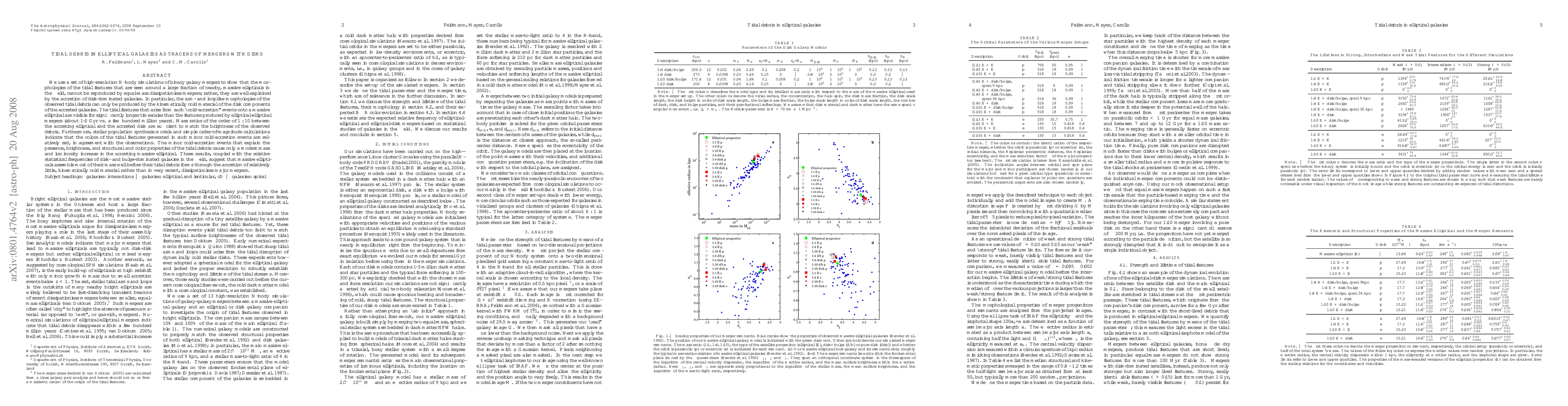 This paper demonstrates that tidal debris in massive elliptical galaxies, characterized by arm- and looplike morphologies, results from the accretion of disk-dominated galaxies rather than equal-mass elliptical mergers. These "cold-accretion" events produce visible tidal features for longer timescales and match the observed brightness and colors of the debris.