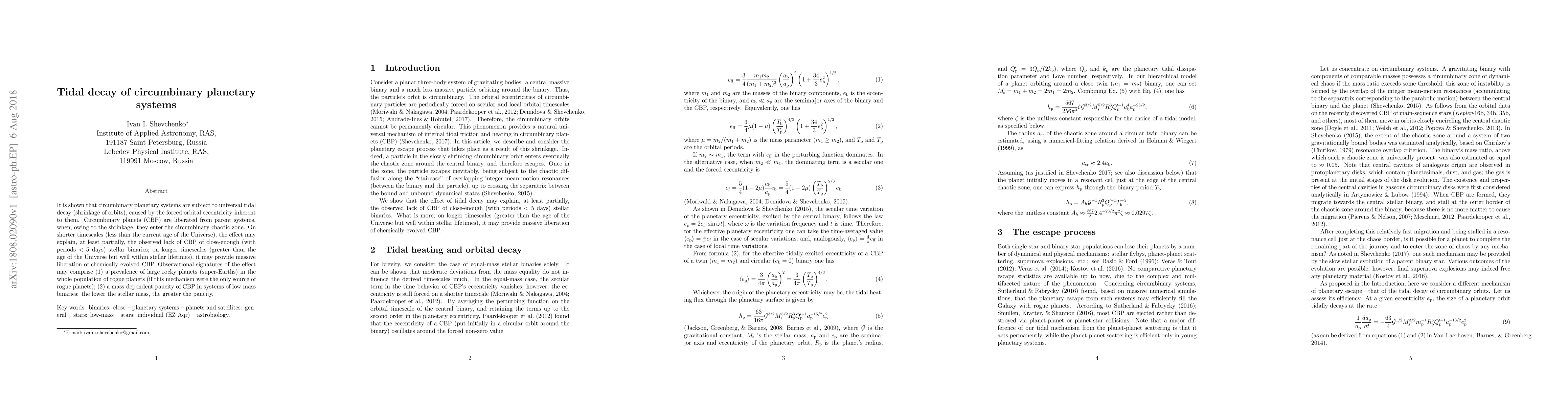It is shown that circumbinary planetary systems are subject to universal tidal decay (shrinkage of orbits), caused by the forced orbital eccentricity inherent to them. Circumbinary planets (CBP) are liberated from parent systems, when, owing to the shrinkage, they enter the circumbinary chaotic zone. On shorter timescales (less than the current age of the Universe), the effect may explain, at least partially, the observed lack of CBP of close-enough (with periods < 5 days) stellar binaries; on longer timescales (greater than the age of the Universe but well within stellar lifetimes), it may provide massive liberation of chemically evolved CBP. Observational signatures of the effect may comprise (1) a prevalence of large rocky planets (super-Earths) in the whole population of rogue planets (if this mechanism were the only source of rogue planets); (2) a mass-dependent paucity of CBP in systems of low-mass binaries: the lower the stellar mass, the greater the paucity.