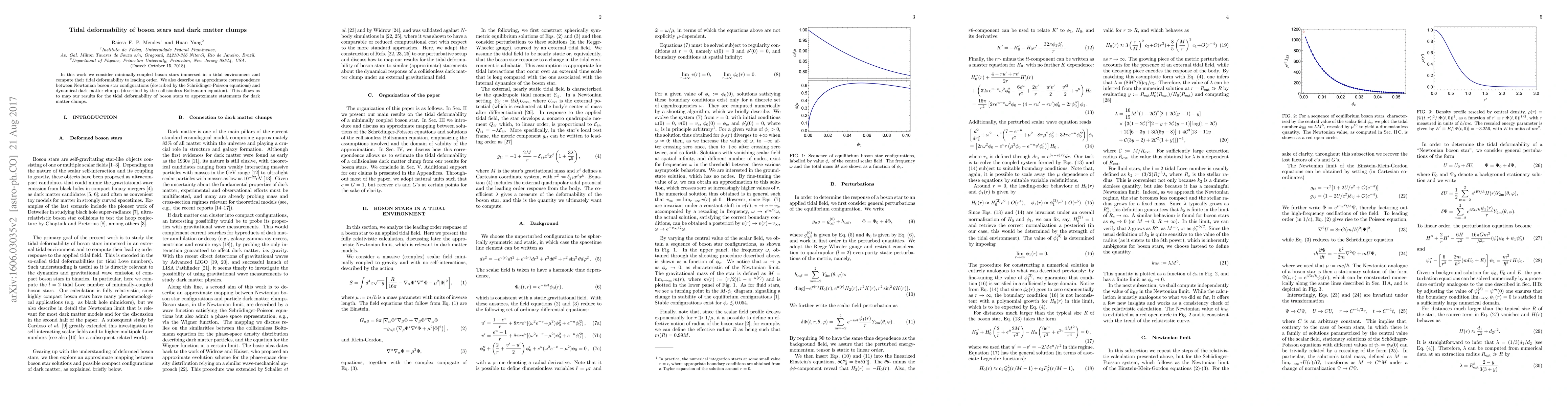This paper investigates the tidal deformability of boson stars under tidal forces and finds a correspondence between boson star configurations and dark matter clumps, allowing for the extrapolation of results to dark matter dynamics.
